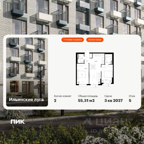 Продаётся 2-комн. квартира площадью 50,4 кв.м на 2 этаже 9 этажного дома (Корпус 4.3, Секция 1) проекта ПИК Ильинские луга. Светлый просторный подъезд на уровне земли, функциональная планировка, большие окна, предчистовая отделка. Жилой район "Ильинские луга" находится в 10 километрах от МКАД по Новорижскому шоссе, в 20 минутах на автомобиле от станций метро "Волоколамская", "Тушинская" и "Строгино". В будущем ближе к проекту, в 9 минутах пути на машине, откроется станция "Ильинская" Рублёво-Архангельской линии, которая будет соединять Арбатско-Покровскую линию и Большую кольцевую линию. Сейчас в квартале начались продажи в корпусах 3.2, 3.3, 3.4, 3.5 и 3.6. "Ильинские луга" — масштабный проект, в который входит девять детских садов, четыре школы и поликлиника. Он строится в престижном и экологичном районе среди лесов и памятников природы. За 5 минут от жилого квартала можно доехать до Рублёво-Успенского шоссе, а за 30 минут — до центра Москвы. До крупного торгового центра "РИГАМОЛЛ" всего 5 минут на автомобиле, а до ТЦ "Твой дом" и гипермаркета "Глобус" — 10 минут. В "Ильинских лугах" строятся только девятиэтажные дома — такая архитектура соответствует спокойной жизни за городом. В каждом дворе-парке есть места для отдыха, детские и спортивные площадки. А ещё, здесь уже открыт большой PlayHub "Гравити" — современное игровое пространство с космической тематикой, холмами, зонами для игр и отдыха жителей любого возраста. На первых этажах уже работают магазины, кафе и пекарни. Места для отдыха от "Ильинских лугов" тоже недалеко: 10 минут на машине — и вы в музее-усадьбе "Архангельское". Также рядом находится Лохин остров — памятник природы, где водятся речные черепахи, есть места для кемпинга и возможность сплавиться по реке. Артикул 1011755 (Застройщик ООО "СЗ "ГРАДОЛИМП")