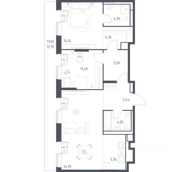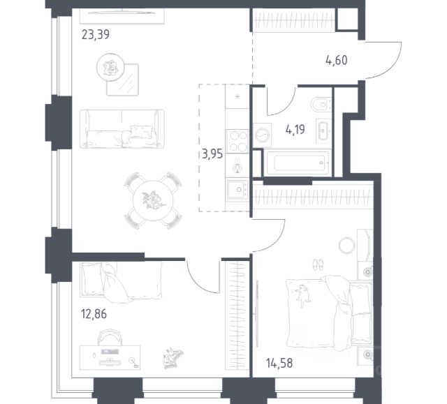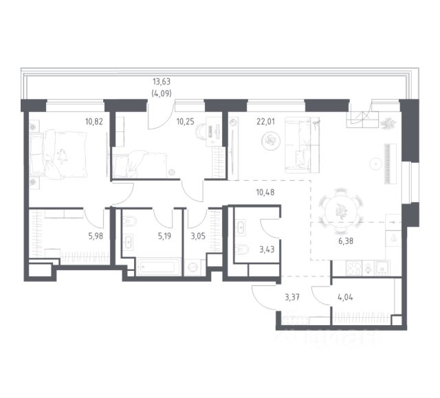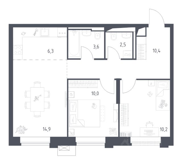 О квартире Продаётся двухкомнатная квартира общей площадью 56.86 кв. м. с отделкой на выбор: черновая, White Box. Квартира на 25 этаже корпуса 5 в жилом комплексе бизнес-класса "Среда на Кутузовском". До метро "Кунцевская" 10 минут пешком. Исторический зелёный район "Среда на Кутузовском" строится в Кунцево - историческом и экологически чистом районе Москвы. Здесь нет крупных производств, много лесных массивов и роза ветров, которая обеспечивает приток чистого воздуха. Район наполнен жизнью и уже развит: много детских садов и школ, поликлиники, магазины, кафе, спортивные объекты, парки. - 10 минут пешком до станции метро "Кунцевская". - 5-8 минут на машине до Кутузовского проспекта и Можайского шоссе и 10-15 минут до Рублёвского и МКАД. - 15 минут езды до Крылатских холмов, Суворовского парка и заказника "Долина реки Сетунь". Акции и спецпредложения - Выгода 12%: если внести 100% оплату или оформить семейную ипотеку под 6%. Действует до 13 апреля. - Низкие ставки по ипотеке: 0,1% в первый год или 0,11% в первые два года кредита. - Трейд-ин от "Среды": можно обменять свою текущую квартиру на новую. - Ипотека для семей с детьми: если ребёнку до 7 лет, предлагаем льготную ставку 3,5% О жилом комплексе "Среда на Кутузовском" - новый квартал с башнями от 12 до 44 этажей, окружённый лесными массивами и историческими усадьбами старой Москвы. Во внутреннем дворе есть водоём, многоуровневые зоны с детскими и спортивными площадками, коворкинг на свежем воздухе и локации для уединённого отдыха. Особенности - Архитектура с многослойными фасадами. - Квартиры с террасами и мастер-спальнями. - Окна в пол на всех этажах. - Общественные лаунж-гостиные. - Собственный ландшафтный парк во дворе. - Зоны барбекю и площадки для отдыха у воды. - Умный подземный паркинг. - Стрит-ритейл на первых этажах.