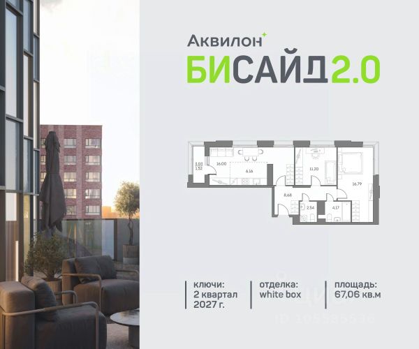 Продажа от застройщика. Продается 2-комнатная квартира на 17 этаже современного жилого комплекса Бисайд 2.0. Вид из окон: на улицу. Срок сдачи: 2 кв. 2027 г. Квартира с лоджией. Отделка WhiteBox: - Вам не придется заниматься черновыми работами. - Возможность реализовать любой дизайн-проект. Расположение: В Бисайд 2.0 все необходимое - в шаговой доступности, не нужно тратить много времени на дорогу до работы, школы и поликлиники, походы в магазины и кинотеатры. Квартал расположен на пересечении ключевых транспортных магистралей Москвы, что позволяет быстро и легко добраться до любой нужной локации. Выбирайте наиболее подходящее занятие или попробуйте все! - Спортивные центры - Ретейл на первых этажах - Событийная площадь с амфитеатром - Дворовые площадки для активностей Транспортная доступность: - 5 минут на машине до ТТК - 7 минут на машине до Садового кольца - 7 минут пешком до станции "Нижегородская Внутренняя инфраструктура Бисайд 2.0: - Своя школа на 825 учеников - Просторное и светлое гранд-лобби - Коворкинг на открытом воздухе - Детский клуб Akvilon Kids - Подземный паркинг - Колясочные и велосипедные - Сити-боксы для хранения - Профессиональная управляющая компания Преимущества: - Технология энергоэффективности Termo-S, снижающая теплопотерю домов и позволяющую экономить на электроснабжении - Soundstop - технология дополнительной шумоизоляции на 39 дБ в квартирах с WhiteBox и чистовой отделкой - Система умного дома inHome 3.0 позволит контролировать коммунальные расходы, оплачивать счета и пользоваться услугами, не выходя из умного дома - Vent-In - система циркуляции воздуха в каждой комнате