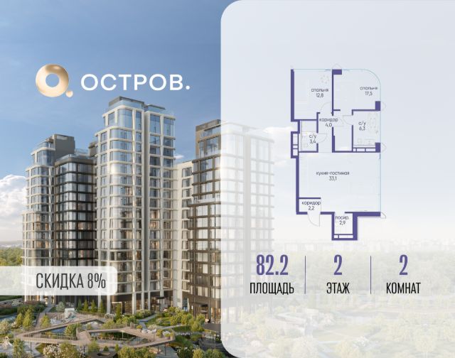Предлагается к продаже квартира 42.8 м2 с премиальной отделкой "под ключ" на 6/13 этаже ЖК "Остров" (1-й квартал).