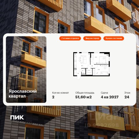 Продаётся 2-комн. квартира площадью 51,4 кв.м на 9 этаже 25 этажного дома (Корпус 2.2, Секция 1) проекта ПИК Ярославский квартал. Светлый просторный подъезд на уровне земли, функциональная планировка, большие окна, c отделкой. Проект "Ярославский квартал" возводится в Мытищах, в 6 км от МКАД. Жилой квартал, состоящий из 8 корпусов, строится рядом с Ярославским шоссе и имеет удобный заезд с крупной автомагистрали. На территории проекта появится школа, детский сад и пешеходный бульвар. Индивидуальные дизайны фасадов для "Ярославского квартала" разработало петербургское архитектурное бюро RHIZOME. В их портфолио вошли работы для Московского музея современного искусства, ГЦСИ, Манифеста 10 и ЦВЗ Манеж. За 7 минут можно дойти пешком до ближайшей автобусной остановки. Столько же займёт дорога до "Лосиного острова" - облагороженного парка с разными активностями для всей семьи, благоустроенными зонами для отдыха, местами для прогулок и пробежек на свежем воздухе. Доехать на автомобиле до Ярославского шоссе получится за 3 минуты, до станции "Мытищи" - за 9 минут, до МКАД - за 15 минут. Артикул 1013130 (Застройщик ООО "Специализированный "ГЕОПАРК") Продам 2-комнатную квартиру с отделкой рядом с метро ВДНХ.
