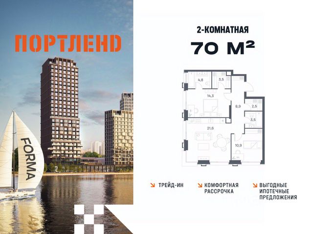 Цены указаны с условием 100% оплаты и стандартной ипотеки. Продаётся 2-к. квартира, 2 этаж в жилом комплексе бизнес-класса ПОРТЛЕНД от девелопера FORMA. ЖК расположен на берегу Москвы-реки в северной части района Печатники в акватории Южного речного порта. Основные преимущества проекта: • Самая протяженная береговая линия реки в Москве 13 км. • Вид на реку в сторону запада панорамные окна на самое широкое водное пространство Москва-реки (900 м) и на закат. • 95% квартир с видом на воду. • К ПОРТЛЕНД не примыкает крупных автомагистралей - отсутствие фонового шума дорог. • В перспективе ближайших 11 лет на территории района запланировано грандиозное преобразование и комплексное развитие. • Собственная набережная длиной 412 м., которая после завершения строительства сомкнется с эко-парком Печатники. • Прямой выход к воде и отсутствие проезжей части между ПОРТЛЕНД и береговой линией. • Инфраструктурное разнообразие: супермаркеты, крупные торговые центры, рестораны, кафе, фитнес-клубы, бьюти-салоны, компании сферы услуг и многое другое. • Собственная школа на 300 мест и детский сад на 275 мест. • Паркинг на 650 м/м • Транспортная вседоступность: метро, авто, велосипед, речной трамвай, канатная дорога • 15 мин. пешком до м. Печатники, 15 мин. на авто до ТТК, 20 минут на авто до Садового кольца Продается 2-комнатная квартира с отделкой в районе Печатники в Москве.