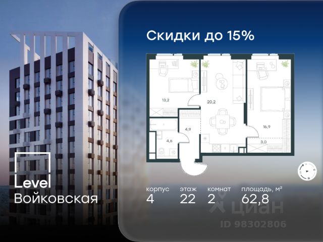 Сервисные апартаменты для жизни! Продаются 2-комнатные апартаменты 58.87 кв.м. на 5-м этаже 20-этажного комплекса. Преимущества лота: - Мастер-спальня - Гардеробная - Панорамные окна - Вид на парк - Отделка White box - Потолки 3,3 м - Доступ к сервисам комплекса класса Премиум DIUS — многофункциональный комплекс бизнес-класса на севере Москвы, сочетающий сервисные апартаменты, бизнес-центр класса А и торгово-развлекательную галерею. Проект, воплощающий современный подход к жизни в мегаполисе, позволяет объединить комфорт проживания, работу, деловые встречи и досуг в едином пространстве. На территории DIUS предусмотрены двухуровневый подземный паркинг с прямым доступом из лифта, гостевые парковочные места, а также бизнес-центр и торгово-развлекательная галерея. Территория комплекса закрыта для посторонних и благоустроена с учётом современных стандартов: качественное озеленение, прогулочные дорожки, зоны тихого и активного отдыха. Закрытая территория, современные лобби, коворкинги, спортивные зоны и общественные пространства создают условия для жизни, работы и отдыха. Резиденты комплекса могут воспользоваться профессиональными сервисами управляющей компании, включая уборку, техническую поддержку, обеспечение безопасности и доверительное управление для инвесторов. DIUS расположен в районе с развитой инфраструктурой и высоким спросом на аренду. В шаговой доступности — станция МЦД-2 "Гражданская" (5 минут пешком) и станции метро "Аэропорт" (15 минут пешком) и "Сокол". Быстрый выезд на основные магистрали Москвы обеспечивает удобную транспортную доступность: дорога до центра занимает около 25 минут, до Белорусского и Савёловского вокзалов — 15 минут, до аэропорта Шереметьево — 45 минут. В окружении DIUS — Тимирязевский и Петровский парки, ландшафтный парк "Ходынское поле", культурные и исторические объекты столицы, а также крупнейшие торговые и спортивные центры города. Такое соседство открывает разнообразные возможности для отдыха, прогулок и насыщенного досуга. В DIUS реализован формат отделки White Box: каждые апартаменты предоставляется будущему владельцу в современном и подготовленном под чистовую отделку состоянии. Условия покупки: - 100% оплата с максимальной выгодой - Рассрочка на срок до 24 мес. под 0% от застройщика - Трейд-ин с полным сопровождением Мы предлагаем несколько форматов покупки, чтобы вы могли выбрать оптимальный сценарий — исходя из ваших целей, возможностей и финансовых стратегий. Наши менеджеры будут рады ответить на все ваши вопросы - звоните нам напрямую по номеру в объявлении. Продам 2-комнатную квартиру с отделкой в округе САО в Москве.