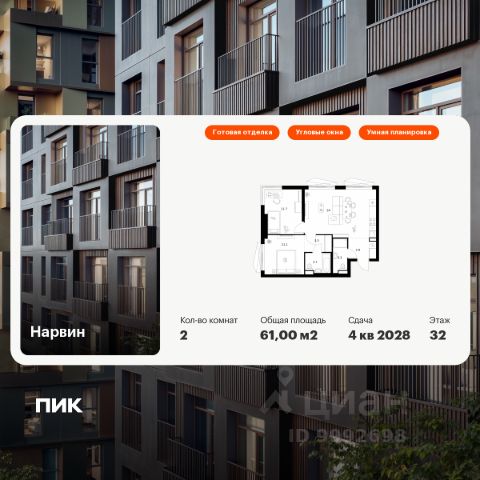 Новостройка! Продается 2-комн. кв-ра площадью 51,5 кв.м, (Корпус 1.3, Секция 3) 12 этаж 38-этажного дома в Нарвин от ПИК. Новый проект ПИК Серии плюс "Нарвин" возводится в Головинском районе Москвы. "Нарвин" — камерный квартал из трёх башен с продуманной архитектурой от российского бюро GAFA. Каждая башня имеет уникальный строгий силуэт, созданный за счёт чередования цветов и форм. В проекте предусмотрены квартиры с готовой отделкой, умными планировками и разнообразными балконами: французские, открытые, закрытые, а также угловые окна и окна в пол с видами на Головинские пруды. А во дворе — благоустроенная территория, которая обязательно станет местом притяжения для жителей. Рядом много мест отдыха, ведь проект возведён в пешей доступности от торговых центров и парков. Шаговая доступность от станции метро "Водный стадион". Рядом просторные парки, магазины и центры развлечений. #d21.11# Артикул 980180 Купить 2-комнатную квартиру с отделкой станция Коптево (МЦК).
