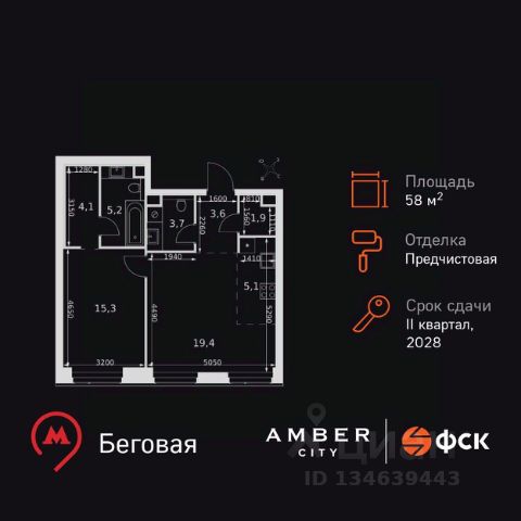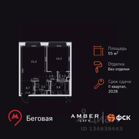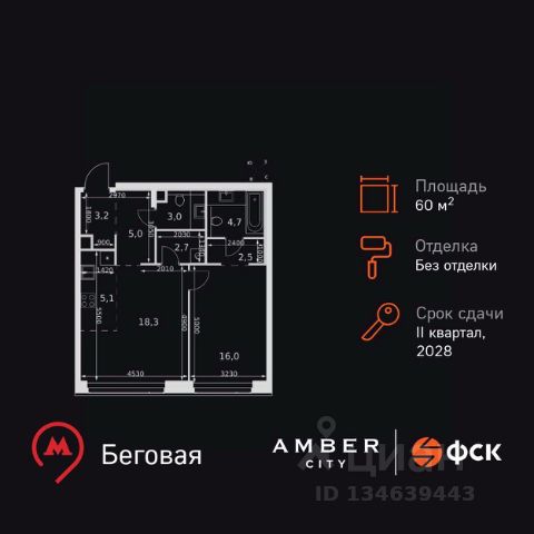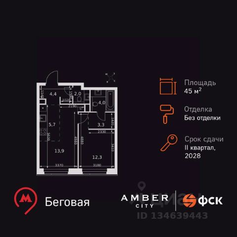 ИПОТЕКА 10% ДЛЯ ВСЕХ БЕЗ НАЦЕНОК! Прямая продажа от застройщика! Жилой Комплекс премиум-класса. Продаётся 2-к квартира номер 1296 общей площадью 45.6 кв.м. на 53-м этаже 57 этажного здания. Без отделки. Цена с учётом скидки. Особенности квартиры: - Мастер-зона с санузлом и гардеробной. Всё для вашего комфорта и удобства, включая личный санузел и гардероб. - Просторная спальня, в которой можно разместить большую кровать. - Линейная планировка - максимальная функциональность и удобство. - Увеличенная ширина окна/окон - больше света и визуального простора. - Увеличенная высота окна - больше воздуха и света. - Гостевой санузел - комфорт и удобство для ваших гостей. - Ниша под стиральную машину - удобство и экономия пространства. - Евроформат - просторное и удобное жилье с отличной планировкой. - Гибкая планировка - создайте пространство по своему вкусу. - Место для игры/занятия спортом - идеальное пространство для активных детей. - Линейная кухня - функциональность и практичность в одном решении. - Проходная кухня-гостиная - идеальное пространство для общения и готовки. - Гардеробная - удобство для хранения и организации вещей. - Ниша под шкаф - компактное и удобное место для вещей. Информация о комплексе: Amber City - это не просто квартал. Это место, куда ведут все маршруты, где рождается вдохновение работать и творить, где счастлива семья и жизнь кипит 24/7. Модная архитектура, высокотехнологичные решения и самодостаточная инфраструктура приближают Amber City к лучшим районам Гонконга и Нью-Йорка. Потрясающие виды на Москва-Сити и центр позволяют заряжаться их амбициозностью, не подчиняясь суете. Стремящиеся ввысь небоскребы, благоустроенный парк с зонами отдыха для взрослых и детей, а также многочисленные объекты инфраструктуры возводятся в западной части центра Москвы. Транспортная доступность: Квартал отличается исключительной транспортной доступностью: большая часть значимых мест Москвы находится на расстоянии 15-20 минут. Такое расположение позволит полностью погрузиться в деловую и культурную жизнь столицы и тратить на дорогу только необходимый минимум времени. Общественный транспорт: - Станция метро "Беговая" - 5 минут пешком - Станция "Беговая" (МЦД-1) - 5 минут пешком - Ж/д станция Беговая - 12 минут пешком - Остановка "2-й Хорошёвский проезд" - 3 минуты пешком - Станция метро "Звенигородская" (строящаяся) - 10 минут пешком На автомобиле: - Звенигородское шоссе - 3 минуты - TTK - 5 минут - Хорошёвское шоссе - 9 минут - Садовое кольцо - 12 минут - Красная Пресня - 15 минут - Тверская - 20 минут - Серебряный бор - 8 минут - Строгинский затон - 8 минут - Москва-Сити - 10 минут - Кремль - 20 минут - Аэропорт Шереметьево - 40 минут Внутренняя инфраструктура: Умелая работа над ландшафтом позволила правильно зонировать многоуровневое пространство, общей площадью 6 гектаров, открывая разнообразные возможности для резидентов Amber City и их детей. Главной артерией квартала станет собственны