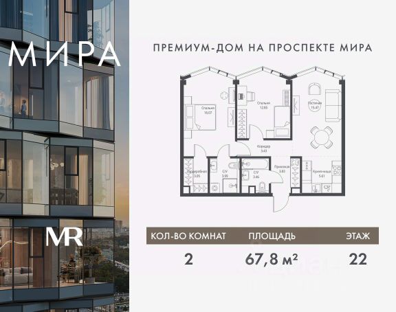 Прямая продажа от застройщика. Продаётся 2-комнатная квартира общей площадью 57.04 м² без отделки в доме премиум-класса МИРА на 9-м этаже 24 этажного дома. Квартира расположена в корпусе 3. Дом премиум-класса МИРА это: • Спокойный район с богатой историей и сложившейся инфраструктурой • Авторская архитектура на стыке классики и современности • Вход в парк прямо из жилого комплекса • Панорамные виды на Яузу, парки, ВДНХ и скульптуру "Рабочий и колхозница" • Удобные сервисы и безопасность для каждого резидента Расположение: Жилой квартал расположен в Алексеевском районе на северо-востоке Москвы, на второй линии домов, таким образом вы сможете дистанцироваться от шума и суеты проспекта Мира, но при этом будете жить недалеко от этой важной городской магистрали. Прямо у дома: • Парк Акведук • Река Яуза • Памятник "Рабочий и колхозница" Пешком: • 16 мин м. ВДНХ На автомобиле: • 12 мин ТТК • 15 мин Садовое кольцо • 12 мин Национальный парк "Лосиный остров" Благоустройство: Концепция благоустройства от бюро "ДРУЖБА" разработана в стиле "Лесная тропа". В уютном дворе расположились словно затерянные в лесу, площадки для отдыха. Они разделяются островками с травами, кустарниками, крупными камнями и деревьями, между которыми проходят узкие песчаные тропинки с деликатной подсветкой по вечерам. Центральной точкой притяжения для жителей станет главная площадь с фонтаном, которая открывается сразу из двух входных групп. Внутренний двор МИРА: • Детская площадка с зонами для игр малышей до трех лет и детей более старшего возраста • Спортивная площадка с профессиональным оборудованием для тренировок • Декоративные перголы • Воздушный арт-объект с подсветкой, похожий на облако • Чайный домик, где в отдельном отапливаемом павильоне можно в любое время года попить кофе с соседями или устроить камерное семейное чаепитие • Зоны для работы и отдыха с гамаком под навесом, скамейками и креслами Инфраструктура и окружение: В Алексеевском районе есть огромные благоустроенные парки, магазины, гимназии с высоким рейтингом и филиалы ВУЗов, частные и государственные детские сады, модные кофейни и фитнес-центры. В квартале МИРА предусмотрены: • 2 ресторана с видом на парк Акведук • 3 кафе • фитнес-студия • подземный паркинг на 330 машино-мест Компания MR предлагает своим клиентам специальные условия приобретения квартир в рамках программ ипотечного кредитования от банков-партнеров. Купить 2-комнатную квартиру первичка в районе Алексеевский в Москве.