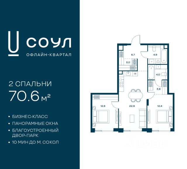 Цены указаны с условием 100% оплаты и стандартной ипотеки. Прямая продажа от застройщика! Продается 2-к. квартира номер 336 общей площадью 75.1 кв.м. на 2-м этаже 18 этажного дома, Корпус 8. Без отделки. Проект бизнес-класса СОУЛ от девелопера FORMA. До метро Сокол 10 мин пешком. Архитектура от британского бюро SimpsonHaugh. Благоустройство дворов — Gillespies и GAFA. Территория состоит из культурного парка и приватных дворов. Озеленение в эстетике лесного оазиса. Насыщенное благоустройство: прогулочные тропинки, релакс-зоны, пряный и сенсорный сады, развивающие детские площадки и воркауты. В центре проекта объект культурного наследия — общественное пространство Изофабрика, построенная в 30-х годах по проекту архитектора Георгия Гольца. Здесь будут располагаться мастерские для взрослых и детей, выставочные залы, коворкинги, образовательный центр, рестораны и кафе. Квартиры с панорамными окнами, мастер-спальнями, гардеробными, классическими балконами и лоджиями, видовыми террасами. Высота потолков от 2,9 до 3,5 м. В проекте 2 детских сада на 100 и 200 малышей. Клубная гостиная, фитнес-комната, детская игровая комната, дизайнерские лобби, подземный паркинг и кладовые. Купить 2-комнатную квартиру первичка на улице Часовая в Москве.