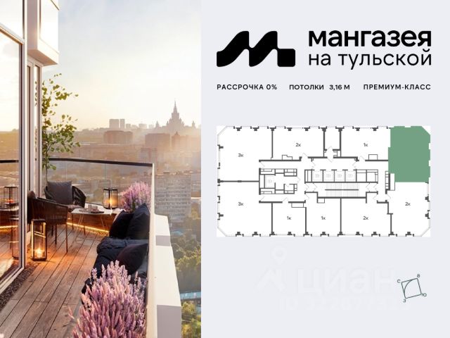 2-комнатная квартира площадью 72.60 м2. Высота потолков - 3.16м . Этаж 6 из 41. Вид из окон - на улицу. Стоимость указана с учетом скидки 15%, ваша выгода составит 6 719 130 рублей! Полная стоимость квартиры без скидки 44 794 200 рублей. Мангазея на Тульской - премиальные жилые небоскребы в Даниловском районе, в 10 минутах от Садового кольца. Проект состоит из 42-этажной Бронзовой башни и 41-этажной Серебряной. Рядом - набережная Москвы-реки, Даниловский рынок, музеи и галереи, престижные школы и вузы. Инфраструктура • Собственный детский сад • Фитнес-центр 3000 м2 с бассейном, термальным комплексом и гидротерапией • Высокотехнологичная медицинская клиника • Ресторан авторской кухни с террасой • Зона ретейла • Кофейни Двор Приватное трехуровневое пространство с всесезонным озеленением, амфитеатром и лаунж-зонами, уличным коворкингом, плейхабом и скалодромом. На придомовой территории расположится уникальный для Москвы объект - скала из натурального камня с водопадом. Квартиры В небоскребах 916 квартир площадью 28,1-146,4 м2. Особенности лотов: угловое остекление, кухни-ниши, мастер-спальни, ванные с окнами, виды на Москву-реку. Форматы - от студий до двухуровневых пентхаусов и лотов панорамным остеклением, террасами и потолками 3,48 м. Технологии и сервис • Пятиступенчатая система фильтрации и умягчения воды • VRF-кондиционирование - микроклимат для каждого помещения • Фильтрация воздуха в лифтах • Интеллектуальная система безопасности и видеонаблюдение 24/7 • Бронирование общественных зон через консьержа или мобильное приложение За комфорт отвечают консьерж- и беллмен-сервис, инженерная служба и собственная управляющая компания Мангазея Сервис. Кол-центр для резидентов круглосуточно принимает заявки на ремонт и уборку. 2-комнатная квартира первичка в районе Даниловский в Москве.