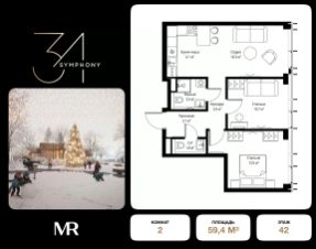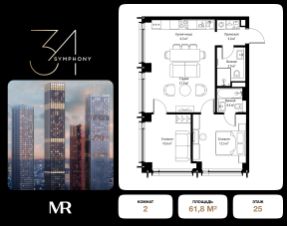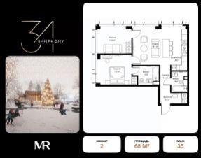 Дом сдан. Ключи в день покупки! В продаже 2-комнатная квартира площадью 63.20 м² с предчистовой отделкой на 27 этаже 54 этажного дома в корпусе Графит. ЖК Симфония 34 - концептуально новый жилой комплекс премиум-класса с подземной парковкой, состоит из четырех башен высотой 36 - 54 этажа. Квартиры сдаются с базовой (предчистовой) отделкой MR BASE или дизайнерской чистовой отделкой MR READY. Высота потолков 3 - 6 метров, окна высотой до 2,6 м. Более 100 кладовых в подземной части ЖК и более 500 на этажах. Безопасность - Система контроля входа на территорию комплекса, биометрия - Система автоматического водяного пожаротушения и противопожарного водопровода, система пожарной вентиляции - Доступ на парковку при помощи системы распознавания автомобильных номеров, карточка для контроля доступа резидентов - Система видеонаблюдения - Круглосуточная связь через приложение, телефон, голосовые сообщения с охраной, консьержем, call-центр. Расположение Пешком - 6 минут до метро "Дмитровская" - 15 минут до Тимирязевского парка На машине - 5 минут до Савеловского вокзала и Аэроэкспресса в Шереметьево - 10 минут до Москва-Сити и Садового кольца Благоустройство - 70% территории отведены под зеленые насаждения и ландшафтный дизайн - Приватный Японский сад - Детские площадки с зонированием по возрасту - Clubhouse для резидентов - Wellness & SPA - Зона для пикника, зона с гамаками - Центральное лобби, ресторан, коммерческие помещения - Дополнительный вход/выход на территорию комплекса Окружение - В 10 минутах от Symphony 34 находится дизайн-завод Flacon, где регулярно проходят культурно-образовательные и развлекательные мероприятия - Тимирязевский парк расположен в 850 м. Площадь парка 232 га - Рядом расположен парк "Дубки", площадью 16,5 га. - В 15 минутах расположен Хлебозавод 9. Здесь находятся шоурумы брендов, кафе разных кухонь мира, образовательные проекты и площадки для мероприятиКомпания MR предлагает своим клиентам специальные условия приобретения квартир в рамках программ ипотечного кредитования от банков-партнеров. Продается 2-комнатная квартира первичка в районе Савеловский в Москве.