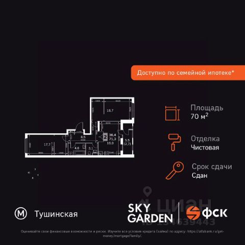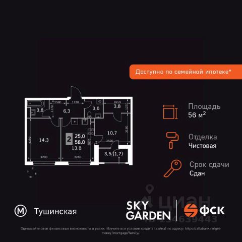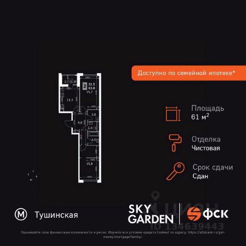 Прямая продажа от застройщика! Жилой Комплекс бизнес-класса. Продаётся 2-к квартира номер 443 общей площадью 61.6 кв.м. на 14-м этаже 28 этажного здания. Чистовая отделка. Цена с учётом скидки. Особенности квартиры: - Организуем показ в удобное для вас время! - Мастер-зона с гардеробной. Просторное место для отдыха и удобного хранения вещей. - Распашная планировка - отличное сочетание удобства и свободы. - Увеличенная ширина окна/окон - больше света и визуального простора. - Постирочная - организуйте пространство для стирки и сушки вещей. - Раздельный санузел - больше удобства для всех членов семьи. - Гибкая планировка - создайте пространство по своему вкусу. - Место для игры/занятия спортом - идеальное пространство для активных детей. - Можно оборудовать 2 или более рабочих места - пространство для нескольких человек. - Можно оборудовать рабочее место - комфорт для работы и учёбы. - Просторная мягкая зона - комфорт и уют для отдыха всей семьи. - Линейная кухня - функциональность и практичность в одном решении. - Ниша под шкаф - компактное и удобное место для вещей. - Лоджия - уютное место для отдыха и тишины. Квартира с чистовой отделкой. Раскройте свою индивидуальность в создании своего уникального проекта, а трудоемкий ремонт мы возьмем на себя! Вы идете в ногу со временем и предпочитаете современные, универсальные дизайнерские решения? Или вы любитель строгой лаконичной классики? Тогда наши интерьеры придутся вам по душе! Выбирайте то, что ближе лично Вам и реализуйте свои задумки вместе с нами! Информация о комплексе: ЖК "Скай Гарден" в Покровском-Стрешнево: гармония природы и мегаполиса. Живите среди зелени одноимённого парка, рек и каналов с чистым воздухом, сохраняя все преимущества городской инфраструктуры. Идеальный баланс для тех, кто ценит природу без компромиссов в комфорте. Транспортная доступность: Всего в 12 минутах пешком до м. Тушинская и 15 минутах до станции Тушинская МЦД. На автомобиле: 2 км до Волоколамского шоссе, 2,5 км до МКАД и 15 км до Садового кольца Внутренняя инфраструктура: К вашим услугам игровые площадки для детей с горками и фонтанами. Йога на газоне, воркаут, велопарковки. На территории: поликлиника, аптека, супермаркет, зоны отдыха. Игровая комната в лобби, хранилище для велосипедов в подъездах. Рядом: кафе, пекарня, мастерские, секции. Парк 3,5 га с набережной для прогулок. Всё для жизни и спорта в шаговой доступности. Квартира с чистовой отделкой: ваш стиль без ремонта. Выбирайте современный дизайн или классику - мы воплотим ваши идеи. Готовые интерьеры для уникального дома.