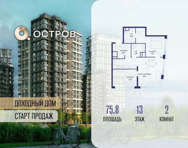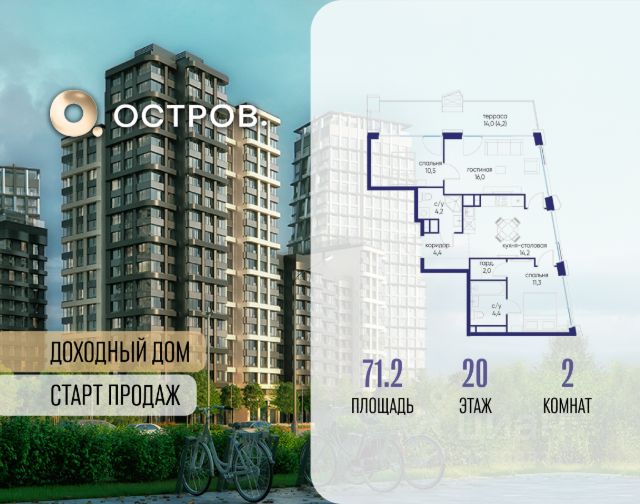 Продаётся 2-комн. квартира от застройщика: общая площадь 70.20 м², жилая 29.40 м², кухня 22.20 м², 13-й этаж, жилой квартал "Остров 14", корпус 6 (секция 1). Срок сдачи: 2 квартал 2029 года. 2 совмещенных санузла. Остров.14 ДОХОДНЫЙ ДОМ - ЧАСТЬ ПРОЕКТА "ОСТРОВ", В 10 МИНУТАХ ОТ МОСКВА-СИТИ, В 15 МИНУТАХ ЕЗДЫ ОТ САДОВОГО КОЛЬЦА. Квартиры для сдачи в аренду Инвестиционный продукт для получения постоянного дохода Квартиры с отделкой и мебелью, и с управлением "под ключ" Постоянный доход для инвесторов, отельный сервис для арендаторов Востребованные для аренды планировки: студии, 1- и 2-комнатные квартиры 28-64 м2 Полная комплектация квартир: отделка, мебель, бытовая техника, кондиционеры Постоянный поток арендаторов - 10 минут от Москва-Сити, 5 минут от метро "Мневники", самодостаточная инфраструктура в квартале и собственная клубная инфраструктура в доме, спортивный, рекреационный и деловой кластеры на территории ОСТРОВА Купить 2-комнатную квартиру первичка на улице Нижние Мневники в Москве.