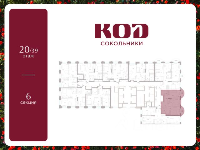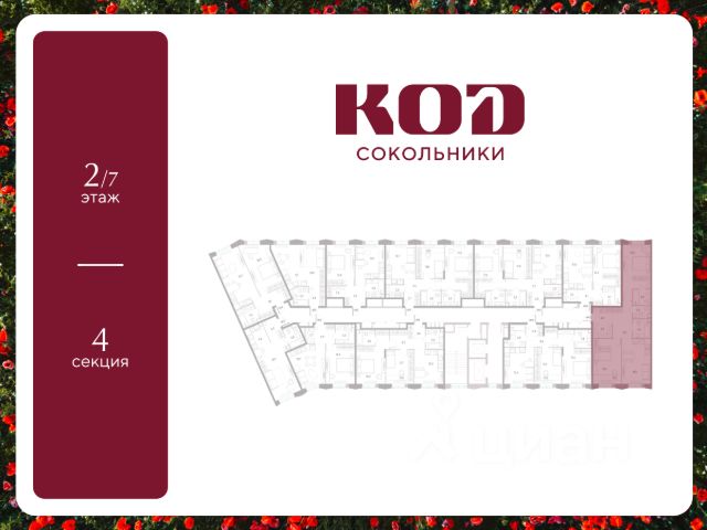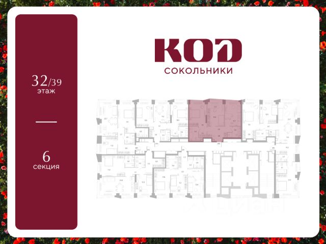 В семейном жилом квартале, расположенном в окружении более 500 га леса и объектов исторического наследия, продается 2-комнатная квартира площадью 55.2 кв. м без отделки. Квартира расположена на 17 этаже 39-этажного корпуса 2.2 жилого квартала бизнес-класса КОД Сокольники от девелопера Новая Эра. Отличная транспортная доступность - 3 мин. пешком до станции МЦД-3 "Митьково"; - 7 мин. пешком до станции метро "Сокольники"; - Удобный выезд на Русаковскую улицу; - 5 мин. на авто до ТТК; - 15 мин. на авто до Садового кольца. Продуманный архитектурный проект - Выразительная архитектура, созданная бюро "Остоженка"; - 70% квартир в квартале - видовые, что позволяет ежедневно наслаждаться панорамами на парк Сокольники, Останкинскую телебашню, исторический центр и Алексеевский монастырь; - 30% квартир - угловые. Увеличенные оконные проемы, панорамное остекление и продуманное расположение комнат усиливают эффект обзорности: гостиные и спальни получают максимум дневного света и живописные виды, которые становятся частью интерьера; - Высокие потолки от 3 метров в типовых планировках; - Дизайнерские лобби от модной студии 211.Studio; - Двухуровневый паркинг с подогреваемой рампой и пологим заездом, подходящим даже для спорткаров; Расположение Семейный жилой квартал КОД Сокольники - это дома бизнес-класса в престижном районе Сокольники. Район отличает хорошая транспортная доступность: несколько минут пешком до станции метро "Сокольники" и платформы МЦД-3 ("Митьково"), регулярные трамвайные и автобусные маршруты, удобный выезд на Русаковскую улицу и Третье транспортное кольцо. До Садового кольца можно доехать за 15 минут. Для пешеходов и велосипедистов в парковой зоне будут оборудованы широкие тротуары и велодорожки, обеспечивая комфортные условия для активного образа жизни. Внутренняя инфраструктура Резидентам будет доступна развитая клубная инфраструктура: собственный фитнес-рум, коворкинг с панорамным видом на парк, игровая комната для детей, пространства для мастер-классов и просторная гостиная, которую можно использовать для отдыха, просмотра кино или проведения мероприятий. На первых этажах жилых домов разместятся объекты стрит-ритейла: кафе, рестораны, магазины и различные сервисы - от аптек и салонов красоты до ателье и барбершопов. Рядом с жилыми корпусами появится деловой квартал с офисами и торговыми площадями на 75 тысяч кв. м, что делает проект привлекательным для тех, кто ценит возможность жить и работать поблизости. Благоустройство Центральным элементом квартала станет благоустроенный двор-парк площадью 3 га с собственным прудом и зелеными зонами для прогулок и отдыха. В границах двора предусмотрены современные игровые и спортивные площадки: мультифункциональная зона воркаута, площадки для волейбола и стритбола, площадки для пилатеса и йоги, скалодром, а также беговые и веломаршруты. В состав проекта войдет образовательный центр, включающий детский сад для 350 малышей, а также школу на 650 учеников.