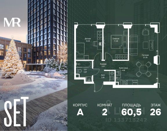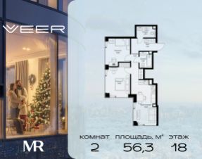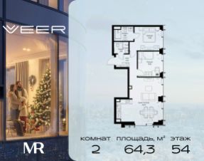 Прямая продажа от застройщика. Продаётся 2-комнатная квартира общей площадью 64.30 м² без отделки в ЖК VEER на 15-м этаже 59 этажного дома. Жилой комплекс бизнес-класса VEER от компании MR — это футуристичный мультиквартал, расположенный в престижной локации на западе Москвы. Благодаря переменной высоте башен — двух 22-этажных, 46-этажной и двух 59-этажных — возникает динамичность в силуэте комплекса, а его яркий образ вносит разноплановость в архитектурный пейзаж района. Расположение и транспортная доступность: • VEER удобно расположен в непосредственной близости от Кутузовского проспекта, обеспечивая быстрый доступ к центральным районам Москвы • Комплекс находится непосредственно напротив самого большого природного заказника в Москве - парка "Долина реки Сетунь", а за семь минут можно доехать до памятника садово-паркового искусства, Троекуровского леса. • Всего в 15 минутах - центр города, самая престижная бизнес-школа управления России "Сколково", дом творчества "Переделкино". • 18 минут пешком до м. "Давыдково" • Открытие новых станций метро в шаговой доступности в будущем Инфраструктура: Разнообразить свой день резиденты VEER смогут также проводя больше времени на свежем воздухе. Двор разделен на 4 зоны разных эмоций и действий, которые пересечены и соединены веерными прогулочными маршрутами: • Спортивная площадка устроена в глубине "Кленовой рощи" • В "Чайном домике" будет создан навес с утеплением для отдыха в любую погоду • Площадки для детей воплотятся в "Волшебный лес" с цветами, зеркалами и световым дизайном • "Центральная площадь" устроена у водного оазиса живописного пруда. Компания MR предлагает своим клиентам специальные условия приобретения квартир в рамках программ ипотечного кредитования от банков-партнеров. Продается 2-комнатная квартира первичка на улице Верейская в Москве.