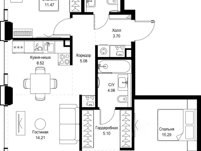 Прямая продажа от застройщика. В ЖК Сет продается 2-комнатная квартира площадью 51.28 м², расположенная в корпусе А, на 31 этаже 52 этажного дома. Сет имеет стратегически выгодное расположение в ЗАО, в районе с большой историей и блестящим будущим: между природной зоной долины реки Сетунь и Кутузовским проспектом. В рамках возведения первой очереди предусмотрено три корпуса высотой 18, 45 и 59 этажей. На верхних этажах спроектированы общедоступные смотровые площадки с панорамным обзором на центр столицы. Преимущества проекта: • Функциональные планировочные решения • Контроль проникновения через входную дверь • Система управления освещением и температурой в квартире • Система защиты от протечек с функцией перекрытия воды • Вход в подъезд по биометрическим считывателям Face ID • Скоростные лифты • Двухуровневый подземный охраняемый паркинг на 495 машино-мест Застройка Сет включает в себя не только жилые корпуса, но и инфраструктурные объекты. Все необходимое для повседневного комфорта будет расположено в шаговой доступности: • Фитнес-Клуб с бассейном • Ведущая городская школа, детский сад и школа искусств • Центр культуры и досуга • Медицинский центр • Кафе и рестораны Расположение комплекса: Пешком: • Метро "Давыдково" - 17 минут • Парк "Долина реки Сетунь" - 3 минуты • Открытие новых станций метро в шаговой доступности в будущем Инфраструктура: Разнообразить свой день резиденты Веер смогут также проводя больше времени на свежем воздухе. Двор разделен на 4 зоны разных эмоций и действий, которые пересечены и соединены веерными прогулочными маршрутами: • Спортивная площадка устроена в глубине ""Кленовой рощи"" • В ""Чайном домике"" будет создан навес с утеплением для отдыха в любую погоду • Площадки для детей воплотятся в ""Волшебный лес"" с цветами, зеркалами и световым дизайном • ""Центральная площадь"" устроена у водного оазиса живописного пруда. На машине: • "Москва-Сити" - 15 минут • Садовое кольцо - 20 минут • ТЦ "Океания" - 8 минут • ТЦ "Времена года" - 13 минут • Сколково - 12 минут • Гребной канал - 17 минут Компания MR предлагает своим клиентам специальные условия приобретения квартир в рамках программ ипотечного кредитования от банков-партнеров. Продается 2-комнатная квартира первичка на улице Верейская в Москве.