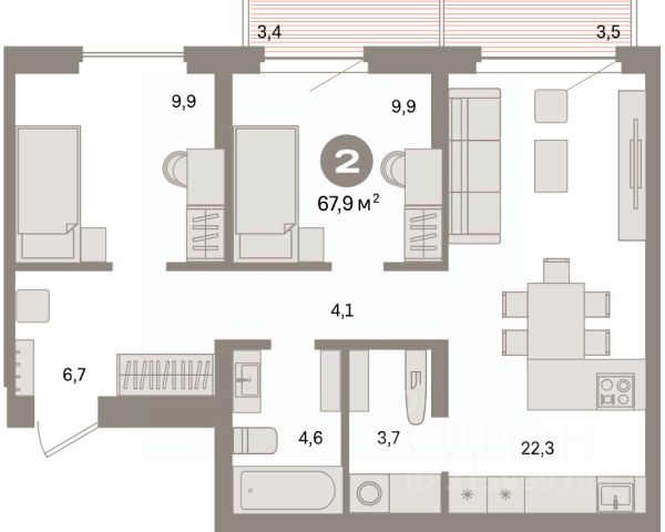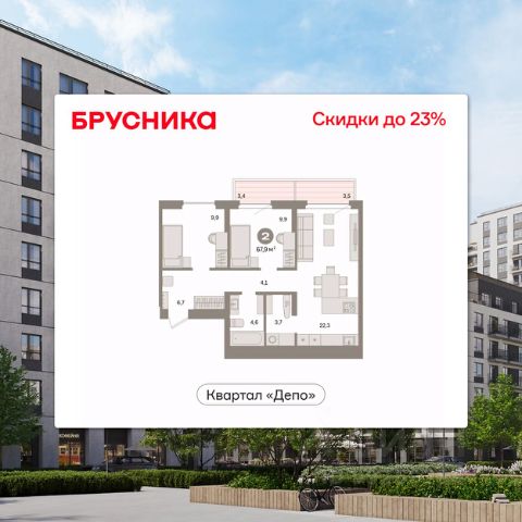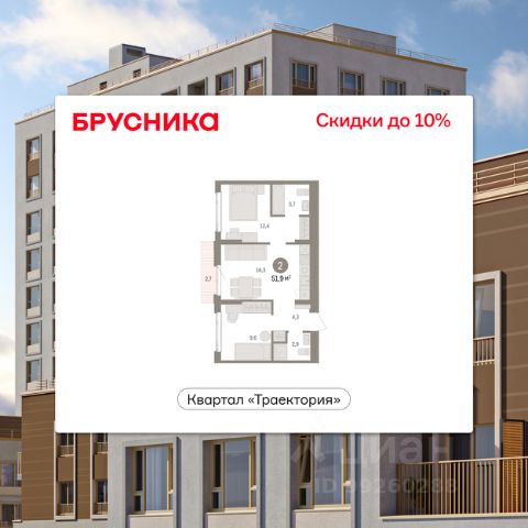 Спешите оформить бронирование на этих условиях, предложение ограничено! Стоимость квартиры указана со скидкой, ваша экономия составит 360,000 руб. По всем вопросам обращайтесь в офис продаж, мы вам все подробно расскажем. 2-комн. квартира с предчистовой отделкой в ЖК "Квартал Траектория" на 5 этаже. Общая площадь: 51.9 кв.м., жилая: 22 кв.м., площадь просторной кухни-столовой: 16.3 кв.м. Комнаты изолированные, все окна выходят на одну сторону. В квартире один балкон, два совмещенных санузла. Высота потолков 2.82 м. Дом монолитный, многоподъездный, переменной этажности, от 7 до 25 этажей. Квартира находится во 2-й секции высотой 7 этажей в корпусе 1-1. На этаже 7 квартир. В подъезде 1 грузовой лифт. Начало строительства - 4 квартал 2025 года. Окончание строительства - 4 квартал 2027 года. Оформление сделки по договору долевого участия. Квартира с кухней-гостиной и двумя спальнями в квартале "Траектория". Особенности планировки: балкон, вид во двор, гардеробная, мастер-спальня, предчистовая отделка, разнесённые спальни. квартиры в нашей базе: МНВ01-Ж2.5.1. Квартал "Траектория" строится в границах улиц Билимбаевской, Расточной, Монтажников и Маневровой Раньше здесь находился оборонный завод 5-ЦАРЗ, основанный в 1945 году. После войны он ремонтировал военную и грузовую технику — от "Виллисов" и "Студебекеров" до советских ЗИС-5 и ГАЗ-67. Сортировка — район с развитой инфраструктурой, обжитыми жилыми кварталами разных эпох и большим количеством парков. До центра Екатеринбурга — 20 минут на машине. Туда же можно отправиться на автобусе: ближайшая остановка общественного транспорта — в 4 минутах от "Траектории". Рядом с "Траекторией" расположены магазины, торговый центр, детские сады, школы, поликлиники и полезные сервисы, а также другой проект Брусники — квартал "Депо". Если хочется развлечений, можно отправиться в ТРЦ "Карнавал" и парк с аттракционами "Таганская слобода" — дорога туда займёт не более 10 минут на машине. Квартал "Траектория" — первый этап комплексного развития территории, которую раньше занимали производственные здания. На месте бывших цехов Брусника создаст дружелюбную среду и комфортное пешеходное пространство для всего района. Для озеленения квартала мы подобрали больше 60 видов растений: ольху, липу, клён, иву, грушу, вишню, сирень, барбарис, гортензию, смородину, ирис, декоративные травы. Они цветут в разное время года и постоянно меняют настроение двора. В "Траектории" мы предусмотрели несколько общественных пространств, открытых для всех горожан: встречающий сквер, лесопарк у храма и событийный сквер между домами. Когда захочется тишины и уединения, можно устроить прогулку во внутренних дворах: в них нет машин и посторонних, зато много зелени, света и мест для отдыха. Каждый двор в квартале "Траектория" — продолжение квартиры, только под открытым небом. Здесь можно прогуляться босиком по траве, устроить утреннюю йогу, почитать книгу в гамаке или отправить детей поиграть, не переживая за их безопасность.