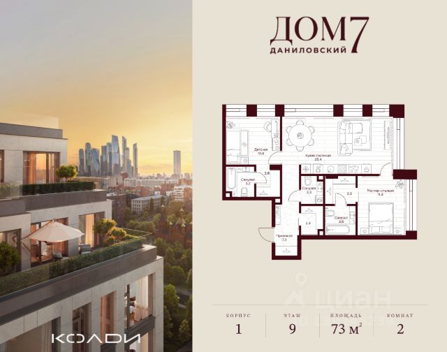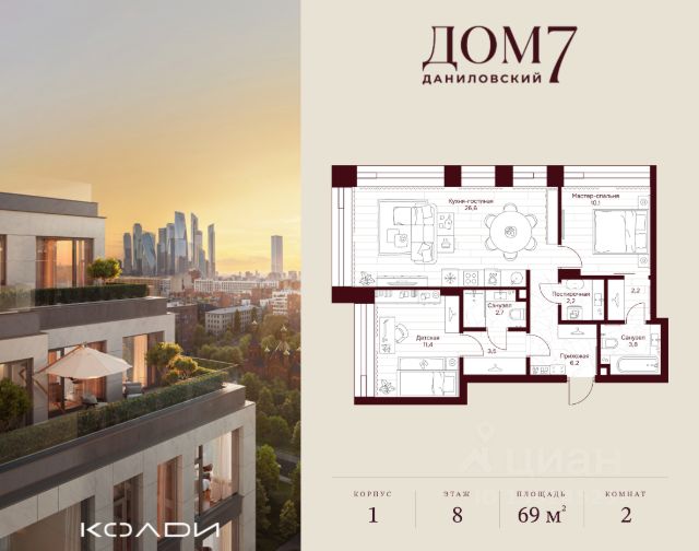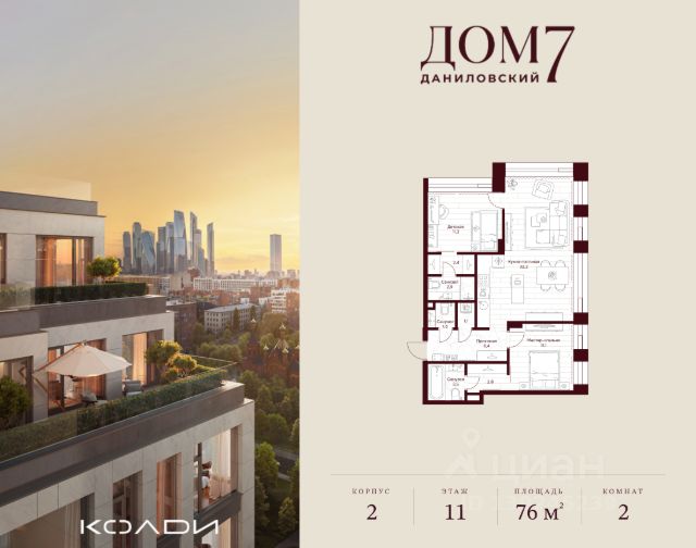 Продается 2-к квартира общей площадью 97.30 кв.м на 2 этаже в жилом квартале премиум-класса "Дом 7 Даниловский". Срок сдачи: 2 квартал 2027 года. Клубный жилой квартал "Дом 7 Даниловский" расположится в тихом уголке "старой Москвы" поблизости от центра города, на улице Серпуховский Вал. Приватный проект вдали от городского шума станет оазисом спокойствия и гармонии среди суеты мегаполиса. Автором архитектурной концепции стало именитое российское бюро "Остоженка". В проекте представлены квартиры как с предчистовой отделкой white box, так и с дизайнерской чистовой отделкой, а также 5 видовых пентхаусов с собственными террасами. На первых этажах расположатся разнообразные сервисы, включая: • Фитнес-зал; • Камерный ресторан; • Детские игровые; • Коворкинг и переговорные; • Лаунж-зоны. На внутренней территории квартала появится всесезонный сад площадью 1 га, разработанный архитектурной дизайн-студией GAFA, где каждый найдет то, что ему по душе: места для занятий спортом и настольным теннисом, детские площадки, уединенные уголки для медитации и спокойного отдыха. Для удобства жителей предусмотрен Консьерж-сервис 24/7. В подземной части дома будет расположен паркинг на 137 машино-мест, а также келлеры. На съезд и выезд будет работать система распознавания номеров. "Дом 7 Даниловский" это жизнь премиум-класса, которой хочется наслаждаться каждый день.