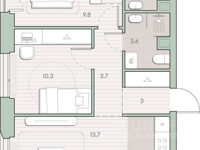 О квартире Продаётся 2-комнатная квартира общей площадью 58.5 кв.м. с отделкой white box. Квартира расположена на 10 этаже корпуса 5.1 в жилом комплексе бизнес-класса "Среда на Лобачевского" в пешей доступности от метро "Аминьевская". О жилом комплексе "Среда на Лобачевского" полностью соответствует критериям современного жилого пространства. Взяв за основу рациональный подход, мы гармонично соединили дизайн, актуальные тренды и функциональность. Продуманный современный экстерьер и функциональные планировки внутри, приватные пространства и разнообразные досуговые зоны для каждого члена семьи — все это "Среда на Лобачевского". Инфраструктура Район отлично развит и наполнен жизнью, здесь уже есть вся необходимая инфраструктура — детские сады, школы, медучреждения, торговые центры, благоустроены парки для прогулок и отдыха, удобен и легкодоступен городской транспорт. Рядом расположены учебные корпуса крупных университетов — МГУ, МГИМО и РАНХиГС. Школы и детские сады в районе занимают высокие позиции в городских рейтингах, поэтому вам не придется беспокоиться о качестве образования детей. Как и об отдыхе: поблизости расположены живописные пруды, реки и парки. Это Парк Олимпийской деревни, Парк имени 50-летия Октября, Мещерский парк и Очаковские пруды. Теперь поставить галочки в еженедельном чек-листе "спорт-прогулки-встречи с друзьями" можно, не покидая любимый район. Особенности Особое внимание в проекте уделяется созданию функциональных пространств не только внутри дома, но и за его пределами. В ландшафтном парке "Среды на Лобачевского" расположены крытые зоны для спокойного времяпровождения, места для активного отдыха и спорта, коворкинг, соседский комьюнити-центр, водные объекты. —Ландшафтный парк во дворе. —Водный сад с зонами отдыха. —Зоны коворкинга. —Дизайнерские гранд-лобби. —Бесключевой доступ. —Подземный паркинг.