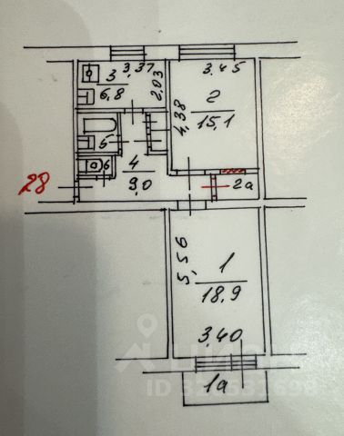 Общая площадь - 37,8 кв. м., комнаты 13,8 кв.м и 8,6 кв.м., кухня -7,3 кв.м., санузел совмещенный.
