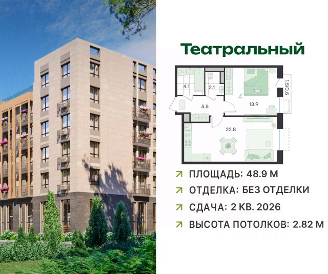 В современном квартале бизнес-класса ЖК Театральный продаётся 2-комнатная квартира, общей площадью 51.3 кв.м, расположенная на 3 этаже (корпус 2, секция 1). "ЖК Театральный" - это малоэтажный загородный квартал, который возводится в Раменском городском округе Московской области, расположенный в окружении вековых сосен, с уникальным ландшафтным двором. Отличная транспортная доступность: - 500 метров от МЦД-3 "Ильинская"; - 8 км до выезда на Новорязанское шоссе; - 16 км от МКАД. Удачное расположение: - живая сосновая роща; - лесопарк "Треугольный" и Цаговский лес; - 12 минут на машине до городского парка; - 10 минут на машине до города Жуковский. Развивающаяся инфраструктура: На территории квартала появятся свой детский сад, спортплощадки, игровые зоны, кафе, аптеки, магазины и многое другое необходимое для жизни. В шаговой доступности находятся поликлиника, школы, детские сады, фитнес-клубы. В каждом подъезде устроены зоны для хранения колясок и велосипедов, розетки для электросамокатов, лапомойки для домашних питомцев. Паркинг с зарядкой для электромобилей. Квартиру можно приобрести по выгодным ипотечным условиям от крупнейших российских банков - Сбербанк, ВТБ, Росбанк. Ключи до сентября 2026 года.
