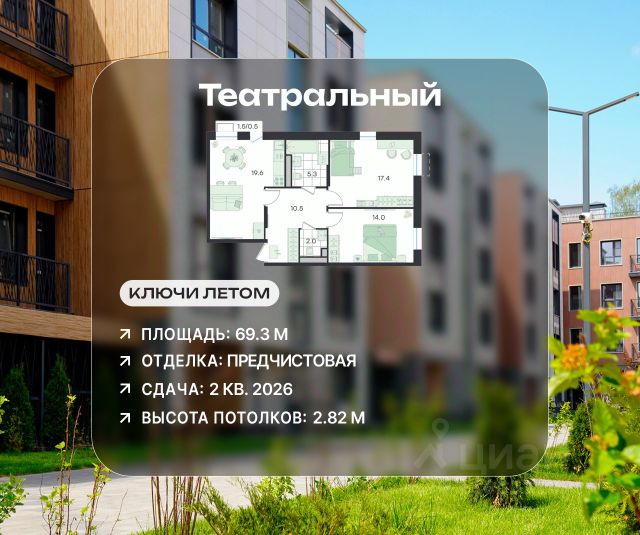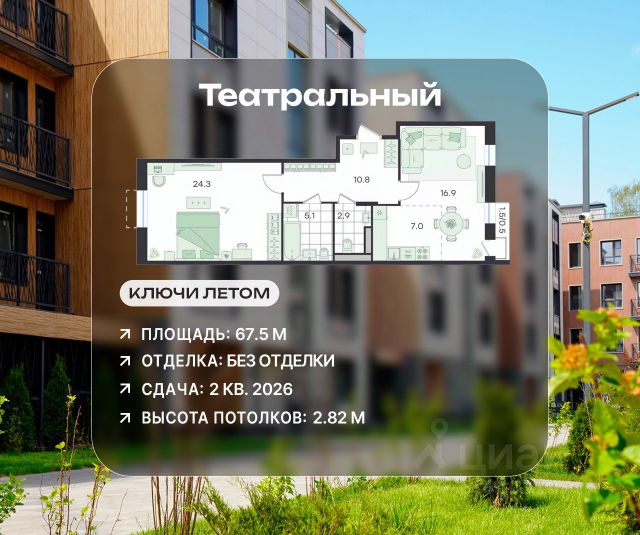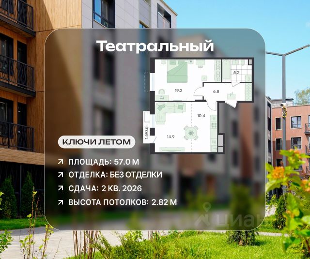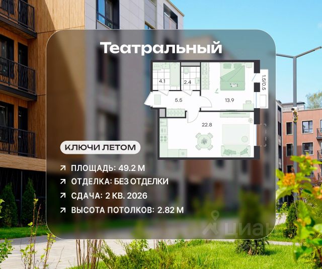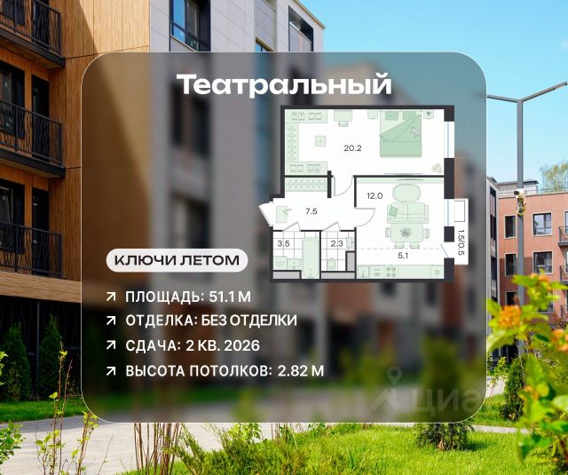 В современном квартале бизнес-класса ЖК "Театральный" продаётся 2-комнатная квартира, общей площадью 51.1 кв.м, расположенная на 4 этаже (корпус 2, секция 7). ЖК "Театральный" — это малоэтажный загородный квартал в Раменском городском округе Московской области, расположенный в окружении вековых сосен, с уникальным ландшафтным двором. Отличная транспортная доступность: - 500 метров от МЦД-3 "Ильинская"; - 8 км до выезда на Новорязанское шоссе; - 16 км от МКАД. Удачное расположение: - живая сосновая роща; - лесопарк "Треугольный" и Цаговский лес; - 12 минут на машине до городского парка; - 10 минут на машине до города Жуковский. Развивающаяся инфраструктура: На территории квартала появятся свой детский сад, спортплощадки, игровые зоны, магазины и многое другое необходимое для жизни. В шаговой доступности находятся поликлиника, школы, детские сады, фитнес-клубы. В каждом подъезде устроены зоны для хранения колясок и велосипедов, розетки для электросамокатов, лапомойки для домашних питомцев. Паркинг с зарядкой для электромобилей. Квартиру можно приобрести по выгодным ипотечным условиям от крупнейших российских банков — Сбербанк, ВТБ, Росбанк. Ключи летом 2026 года.