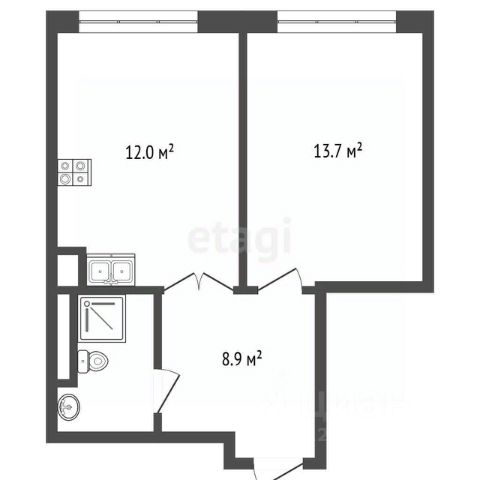 Общая площадь— 42,8м², кухня— 5,5 м². Комнаты смежные, санузел совмещённый, балкон не застеклённый .