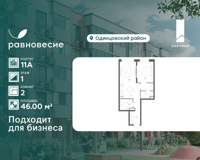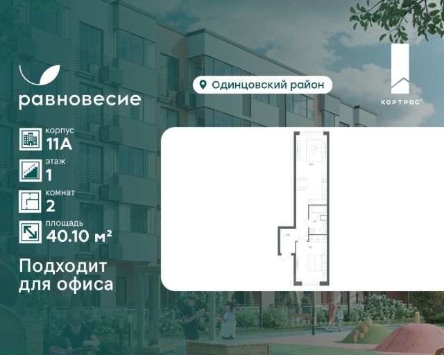 Апартаменты на первом этаже, где можно не только жить, но и развивать своё дело. Подойдёт для мини-кофейни, коворкинга или кабинета частной практики. Современная отделка и комфортная планировка создают атмосферу для вдохновения. Указанная акционная стоимость доступна при 100% оплате или ипотеке без субсидирования. Цена действует до 31.12.2026 23:59:00. Стоимость без акции 9692900. Продаётся апартамент с 2 комнатами общей площадью 42.70 кв. метров на 1 этаже жилого квартала комфорт-класса "Равновесие". На территории комплекса будет возведен детский сад на 360 мест, а на первых этажах жилых домов откроются кафе, магазины и все необходимое для удобства жителей. Локация "Равновесия" выделяется среди других пригородных ЖК разнообразием быстрых маршрутов до Москвы. Для автомобилистов преимуществом станут удобные выезды на Можайское шоссе, Рублёво-Успенское шоссе, Минское шоссе с платной трассой и другие. Также в пешей доступности находятся две ж/д станции — "Жаворонки" и "Здравница". Дорога на электропоезде до делового центра "Москва-Сити" составит всего 35 минут. Особенности ЖК: - Малоэтажная застройка: 4-6 этажей; - Благоустроенный пешеходный бульвар; - Пространства для отдыха и спорта; - Квартиры с террасами на последних этажах; - Квартиры с отдельным входом на первых этажах; - Внутренняя территория квартала свободна от машин; - Безбарьерная среда; - Помещения для хранения детских колясок и спортивного инвентаря.