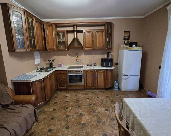 На кухне качественный гарнитур с вместительными шкафами, раскладной стол со стульями, в комнате двуспальная кровать, оборудованная гардеробная, в прихожей встроенный шкаф, вешалка для одежды. В комнатах на полу ламинат высокого класса уложен по диагонали, без порожков. В прихожей, ванной комнате и на кухне керамогранит. Установлена качественная сантехника, хорошая входная дверь.