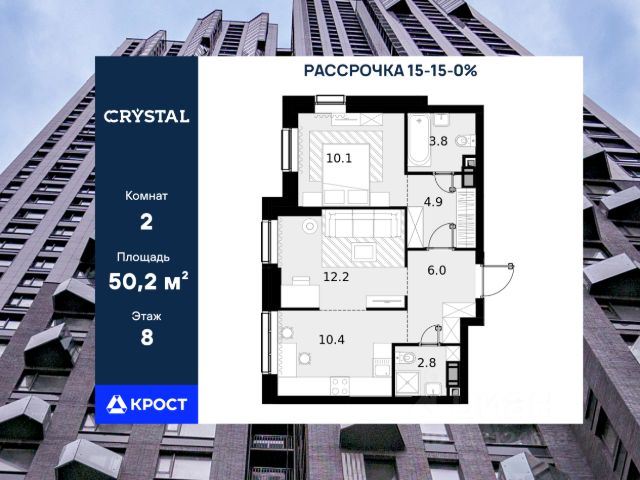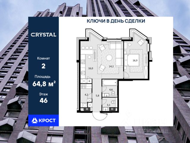 Однокомнатная квартира площадью 60,2 кв.м. на 20 этаже дома бизнес-класса "CRYSTAL Трилогия". Жилой комплекс CRYSTAL Трилогия комфорт в сердце Хорошево-Мнёвников Удобное расположение и транспортная доступность CRYSTAL Трилогия расположен в престижном районе Хорошево-Мнёвники, на улице Генерала Глаголева, всего в нескольких минутах от живописного Серебряного бора и набережной Москвы-реки. Из окон открываются панорамные виды на воду и зелёные зоны, создавая ощущение гармонии с природой. Автомобильная доступность • Звенигородское шоссе и проспект Маршала Жукова быстрый выезд в любую часть города. • 7 км до ТТК, 9 км до МКАД, 10 км до Садового кольца. • Общественный транспорт: • Ближайшая станция метро "Народное ополчение" (2 км). Добраться можно пешком или на автобусе. • В пешей доступности строятся 3 новые станции метро, что повысит транспортную связанность района. Инфраструктура: всё для жизни в шаговой доступности Комплекс входит в состав масштабного квартала Union Park (40 га) это современная городская среда с продуманной инфраструктурой. Образование и развитие: • Лучшие школы Москвы: 1515, 1517, 138, Курчатовская школа. • Детские сады: "Wow Kids Серебряный бор", логопедический "ДАРвиль". • Музыкальная школа им. В. В. Андреева. Медицина и спорт: • Поликлиника "Семейный доктор", медцентр "Мед-Лайт", стоматология. • Спорткомплекс "Серебряный" с бассейном, тренажерным залом и солярием. Магазины и рестораны: • Премиальные магазины: "Азбука вкуса", "ВкусВилл", "Лента", "Магнолия". • Рестораны и кафе: Asia Inn, Wells Home Cafe, рыбный ресторан The Mope. Футуристичная архитектура с продуманным комфортом CRYSTAL Трилогия это уникальный дизайн и эргономичные планировки: Внешний облик: • Кристаллическая архитектура с панорамными эркерами и фасадами в оттенках горького шоколада. • Трехуровневая структура, где на верхнем ярусе вы увидите геометрические эркеры с панорамным остеклением, на среднем уровне расположены квартиры с окнами на 1-2 стороны, а на нижнем отделка австрийским клинкерным кирпичом. Внутреннее пространство: • Светлые входные группы с лаунж-зонами для отдыха и мероприятий. • Подземный паркинг (по машиноместу на квартиру) и кладовые для хранения. • Закрытые дворы с спортивными зонами: • Теннисный корт. • Площадки для воркаута. • Беговые дорожки. • Поле для игровых видов спорта. Квартиры с продуманными планировками • 14 комнатные варианты. • Высокие потолки и панорамное остекление для максимальной инсоляции. • Ровные стены и черновая/чистовая отделка на выбор. • Готовые решения для комфортного заезда.