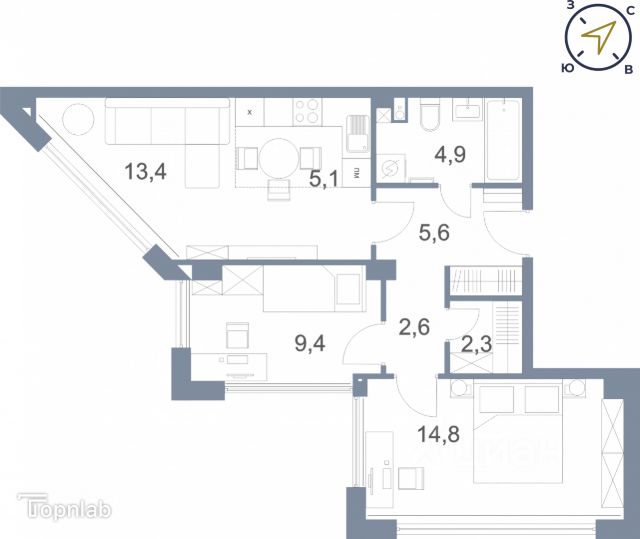 🔷 Площадь недвижимости: от 33,6 м² до 84,2 м²