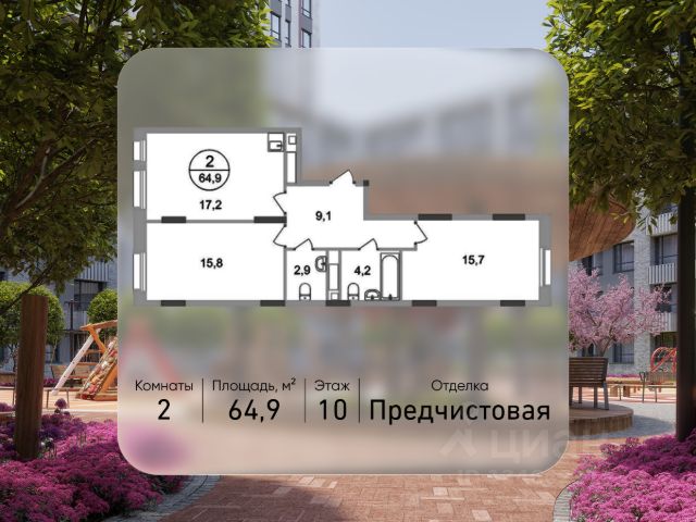 Продается двухкомнатная квартира в городе-парке "Переделкино Ближнее". Общая площадь квартиры - 54,6 кв. м, этаж 4 из 17. Срок сдачи - 3 квартал 2026 года. Тип дома - монолитный. ТОЛЬКО ДО 31 МАРТА выгодные условия на приобретение квартиры в ипотеку или рассрочку. Звоните - и мы подберем оптимальное предложение под ваш запрос! Город-парк "Переделкино Ближнее" расположен в 8 км от МКАД по Боровскому шоссе. ТРАНСПОРТНАЯ ДОСТУПНОСТЬ: - 10 минут пешком до МЦД-4 "Мичуринец" - 15 минут пешком до станции метро "Рассказовка" Солнцевской линии - 10 минут на машине до станции метро "Филатов Луг" Сокольнической линии - 30 минут до центра Москвы - Прямой выезд на дорогу Солнцево-Бутово-Варшавское шоссе, минуя жилую застройку всего ЖК БЛАГОУСТРОЙСТВО: 18 фаза строительства уникальна своим расположением - в шаговой доступности парк на Лукинской улицы, река Алёшинка. На территории 18 фазы строительства будут построены 2 монолитных жилых корпуса повышенного комфорта разной этажности 7, 17 этажей. А также многоуровневый паркинг на 300 м/мест. Вход в жилую часть корпусов каждой секции осуществляется с двух сторон - с наружного контура жилого дома и со стороны дворового пространства, предусмотрен безбарьерный доступ. ВНУТРЕННЯЯ ИНФРАСТРУКТУРА: В рамках данной фазы, для жителей предусмотрено создание пространства, свободного от машин - благоустроенные огороженные дворы с современными детскими и спортивными площадками, разделенными на зоны по возрастам. На территории проекта есть все необходимые объекты социальной и бытовой инфраструктуры: детские сады, школы, магазины, паркинги, аптеки, поликлиники, пожарная часть и др. АВТОРСКИЙ ДИЗАЙН: Современный монолитный дом переменной этажности 7 и 17 этажей. На фасаде предусмотрены корзины для установки кондиционеров. Входные группы домов выполнены по авторскому дизайну. Колясочные располагаются при входе, велопарковка на -1 этаже.