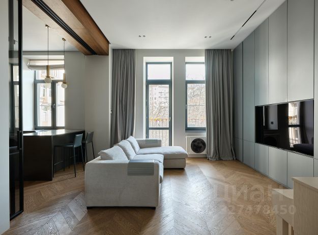 В настоящий момент в квартире проводится капитальный ремонт, который находится в завершающей стадии окончание всех работ до конца марта. Капитальный ремонт включает: замена электропроводки, новая разводка сантехники, гидроизоляция пола, кап. ремонт полов, на полу инженерная доска, потолки оштукатурены и сохранена оригинальная высота потолка сталинского дома, заменены радиаторы, установлены датчики от протечек. Санузел оснащен душевой кабиной и накопительным водонагревателем. Во всей квартире мебель сделана на заказ. Встроенная техника - холодильник, духовой шкаф, газовая варочная панель, вытяжка, посудомойка. Вся техника марки Korting. Для Вас в квартире останется вся мебель и техника! Квартира реальная! в объявлении представлены рендеры дизайн-проекта.