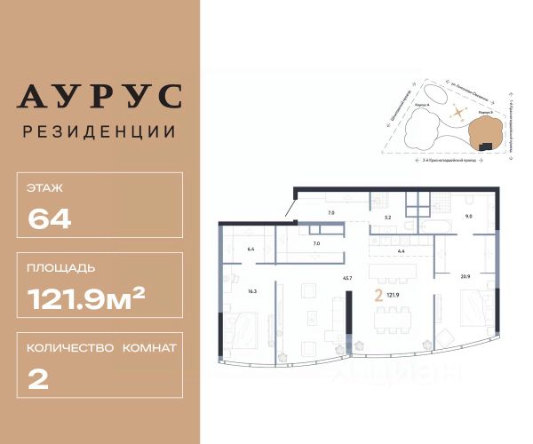 🔷 Площадь недвижимости: от 50,7 м² до 125,7 м²
