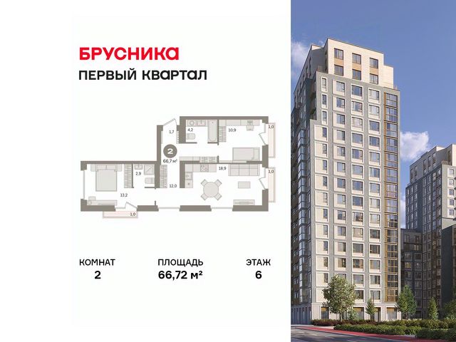 Продаётся с кладовой. Квартира с кухней-гостиной и двумя спальнями в "Первом квартале". Особенности планировки: балкон, второй санузел, гардеробная, мастер-спальня, предчистовая отделка, разнесённые спальни. квартиры в нашей базе: МТК01-Ж4.6.6.