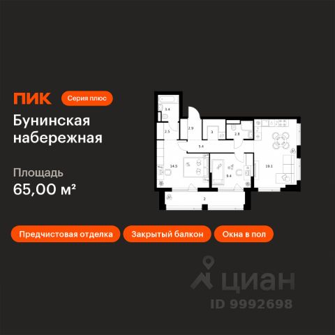 Продаётся 2-комн. квартира площадью 66,2 кв.м на 9 этаже 16 этажного дома (Корпус 2.6/1.3, Секция 3) проекта ПИК Бунинская набережная. Светлый просторный подъезд на уровне земли, функциональная планировка, большие окна, c отделкой. Удобное расположение: 18 минут пешком от м. "Потапово" и 12 минут на автомобиле до станции "Бунинская аллея". 12 минут на автомобиле до трассы Солнцево — Бутово — Варшавское шоссе. 20 минут на автомобиле до МКАД и Калужского шоссе. 1520 минут езды до живописных парков: "Бутовский лесопарк", заказник "Южное Бутово". Особенности проекта Камерный квартал в Новой Москве, на берегу Ивановского пруда. Одна из ключевых особенностей проекта — квартиры с панорамным видом на воду. Архитекторы вдохновились локацией проекта: природные оттенки и активная пластика корпусов напоминают рельефные выступы на берегу, а окна отражают водную гладь, визуально объединяя дома с природой. Преимущества проекта Светлые и просторные лобби с зонами ожидания. Подземный паркинг. Набережная и пешеходная аллея для прогулок. Парк на склоне с игровой зоной. Готовая инфраструктура района: 3 школы, 6 детских садов, взрослая и детская поликлиники. Артикул 968889 (Застройщик ООО СЗ "Стройком") Продается 2-комнатная квартира с балконом рядом с метро Коммунарка.