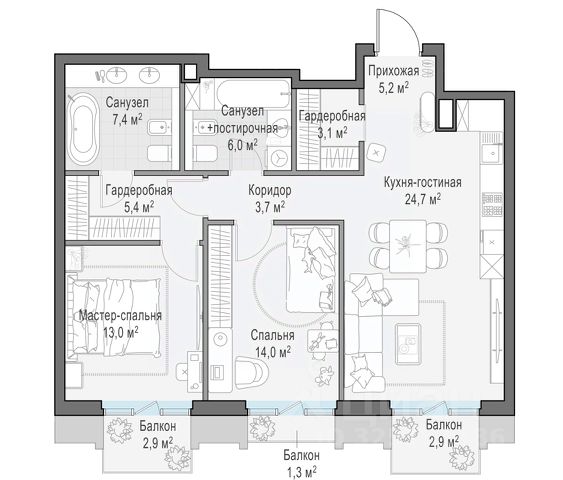 В продаже 2-комнатная квартира квартира в элитном квартале "Тишинский бульвар". Общая площадь квартиры - 90.20 кв.м. Этаж 9 из 14. Корпус К6. "Тишинский бульвар" - тихий зелёный элитный квартал на Тишинке, в престижном и комфортном районе центра Москвы. В нём создан уникальный для элитного дома прогулочный бульвар в своём огромном парке 1,9 га. В парке оборудованы зоны для активного и тихого отдыха, крытые галереи, приватные зелёные комнаты, многофункциональная спортивная площадка, воркаут-зона, детская площадка, сухой фонтан, ручей. В пешей доступности Римско-католический кафедральный собор. Всего в полутора километрах от квартала находятся Патриаршие пруды - излюбленное место для летних прогулок, воскресных бранчей и романтических ужинов. Белая площадь расположена ещё ближе - на расстоянии 1,2 километра. Это точка концентрации деловой жизни и модных ресторанов. В "Тишинский бульваре" только для жителей и их гостей создан уникальный для элитного дома прогулочный бульвар в собственном огромном парке площадью 2,1 га, который занимает 70% территории квартала. Бульвар проходит через весь квартал и объединяет в общее пространство три двора: Кленовый, Рябиновый и Ивовый. В парке созданы крытые галереи и приватные зелёные комнаты для отдыха и медитаций в любую погоду. Насыщенное озеленение многолетними растениями с разными периодами цветения сохраняет территорию квартала красивой круглый год. В квартале насыщенная инфраструктура только для жителей, включая Clubhouse. Здесь оборудованы пространства для здорового образа жизни по стандарту FIT LAB: в парке - многофункциональная спортивная площадка, воркаут-зона, место для занятий йогой и медитации; бесплатный фитнес-клуб с бассейном. Для маленьких жителей доступны детская площадка и игровая комната по стандарту KIDS LAB. Дома оснащены самыми полными и лучшими системами.