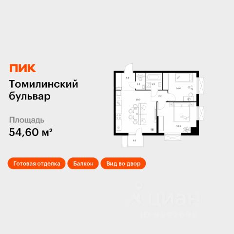Продаётся 2-комн. квартира площадью 53,6 кв.м на 19 этаже 25 этажного дома (Корпус 5-8, Секция 1) проекта ПИК Томилинский бульвар. Светлый просторный подъезд на уровне земли, функциональная планировка, большие окна, c отделкой. Жилой квартал "Томилинский бульвар" возводится рядом с Кузьминским парком в Котельниках. В 20 минутах пешком метро "Котельники", а на автомобиле 4 минуты до Новорязанского шоссе и 6 минут - до МКАД. В жилом квартале 11 корпусов. Высота домов - 25 этажей. В "Томилинском бульваре" будут три собственных детских сада, поликлиника, паркинги для жителей и гостей квартала, парки с Вайфай во дворе каждого дома - с местами для спокойного отдыха, спортивными и детскими площадками. На первых этажах откроются кафе, магазины и другие сервисы, важные для комфортной жизни. В районе, где строится "Томилинский бульвар", всё рядом: школы, детские сады, магазины, торговые центры - например, до "МЕГА Белая Дача" можно доехать за 15 минут. Ещё здесь много мест для прогулок и отдыха на природе, совсем рядом благоустроенный сквер "Патриот". В 13 минутах пешком находится парк "Кузьминки", а в 12 минутах на автомобиле - Люберецкие карьеры, где можно ловить рыбу, загорать и заниматься водными видами спорта в экстрим-парке. Артикул 575951 (Застройщик АО "Яркий мир")