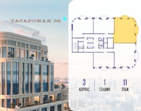 Продается просторная квартира площадью 132.60 м2 в жилом комплексе ТАТАРСКАЯ, 35. Квартира находится в 1 секции корпуса 2. Этаж 5-й из 19. Квартира без чистовой отделки, с просторной кухней 58.40 м2. Жилая площадь 31.90 м2. Высота потолка от 3.50. ТАТАРСКАЯ, 35 - новая архитектурная доминанта Замоскворечья, достопримечательность на фотопанорамах исторического центра Москвы. Элитный дом, созданный для тех, кто умеет смотреть далеко вперед, мыслить масштабно и воплощать собственный сценарий жизни. Вдохновляющие прогулки по променаду набережной, в уютных переулках, в парке "Зарядье", в Михайловском саду и Репинском сквере. Наслаждение высоким искусством в Третьяковской галерее, Доме Музыки, театральном музее им. А.А. Бахрушина, театре на Малой Ордынке. За окнами - Кремль, высотка на Котельнической, панорамы Замоскворечья и острова Балчуг, огни Садового кольца. Собственные спорт-румы, детская, репетиторская, бьюти-пространства, деловое пространство с коворкингом, переговорной и сигарной. Собственный трехуровневый фитнесс-центр с бассейном, тренажерным залом, сауной, хаммамом, массажным кабинетом. Площадь двора - 1,8 га, половина территории покрыта деревьями, кустарниками и лужайками. Дом расположен внутри Садового кольца - отсюда в считанные минуты можно добраться до важнейших мест столицы: достопримечательностей и парков, театров и ресторанов, деловых и административных центров. 7 минут до Кремля на автомобиле, 15 минут до Третьяковской галереи и 8 минут до Садового кольца пешком. Планировочные решения и визуализации предварительны, возможны изменения.