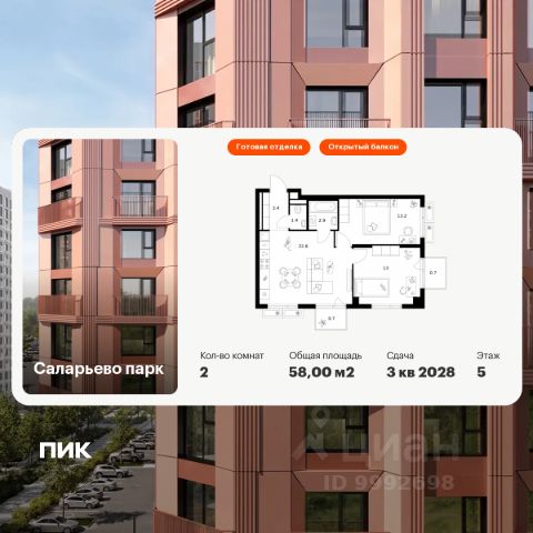 Продаётся 2-комн. квартира площадью 46,4 кв.м на 5 этаже 16 этажного дома (Корпус 57.1, Секция 1) проекта ПИК Саларьево парк. Светлый просторный подъезд на уровне земли, функциональная планировка, большие окна, предчистовая отделка. Жилой район "Саларьево парк" расположен в Новой Москве, в четырёх километрах от МКАД по Киевскому шоссе. Две станции метро: "Саларьево" и "Филатов луг", — находятся в пешей доступности от проекта. Дойти до них можно за 510 минут. В квартале уже создана качественная среда, где есть абсолютно всё для полноценной жизни, работы и отдыха. Благодаря удобному расположению проекта всё важное будет рядом: детские сады, школы, кафе и рестораны, шопинг в торговых центрах, фитнес и даже аэропорт. Все корпуса в квартале гармонично сочетаются, образуя единую городскую среду. Между собой их объединяет невысокая этажность и натуральная цветовая гамма. Здесь приятно гулять и проводить время на улице всей семьёй. В "Саларьево парке" создана уникальная образовательная среда, включающая в себя шесть школ, рассчитанных на 6 250 учеников. Две из них уже открыты, их посещает 2 300 детей. Также на территории "Саларьево парка" находится 12 детских садов, один из которых с бассейном. Сейчас уже открыты 7 садов. В "Саларьево парке" открыта уникальная игровая площадка — PlayHub "Оригами". Здесь есть ручей, горка-труба и рельефные холмы. Взрослые смогут отдохнуть в уютном кафе, пока дети играют. Также на территории проекта есть SportHub — большая спортивная зона, разделённая по интересам и возрастам. Здесь можно заниматься разными видами спорта: футболом, баскетболом, волейболом и стритболом. Зимой центральную часть площадки превращают в каток. Во дворах-парках жилого квартала есть места для отдыха, детские и спортивные площадки. На первых этажах домов расположены магазины, кафе и полезные сервисы. Также вблизи проекта есть несколько масштабных торговых центров. До ТЦ "Саларис" пять минут пешком, до "Рио", Metro Cash & Carry и "Леруа Мерлен" — пять минут на автомобиле. Артикул 1019088 (Застройщик ООО "Специализированный Застройщик "Тирон") Продается 2-комнатная квартира с балконом рядом с метро Саларьево.