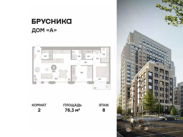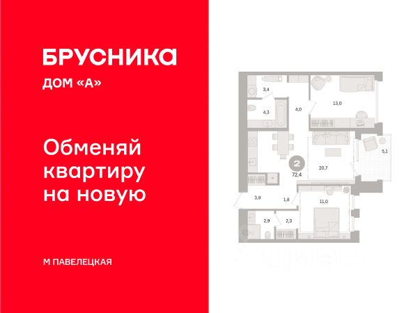Квартира с кухней-гостиной и двумя спальнями в Доме "А". Особенности планировки: балкон, без отделки, вид во двор, гардеробная, мастер-спальня, постирочная. Срок сдачи IV кв. 2027 Дом А - проект от застройщика Брусника располагается на границе с ЦАО, рядом с метро Павелецкая. В 2-х километрах от дома протекает Москва река. ТРИ СТАНЦИИ МЕТРО В ПЕШЕЙ ДОСТУПНОСТИ "Павелецкая" 10 минут, "Серпуховская" 15 минут, "Тульская" 18 минут. Проект представляет собой монолитное здание в стиле современного американского традиционализма с присущей ему элегантностью. Центральный элемент ансамбля — выразительная 23-этажная башня. Ее обрамляют две симметричные секции с переменной этажностью от 3 до 8 этажей. РАЗВИТАЯ ИНФРАСТРУКТУРА ЗАМОСКВОРЕЧЬЯ Магазины, аптеки, торговые и развлекательные комплексы, 11 школ и 10 детских садов, Кафе, спортзалы, гостиницы. В Замоскворечье находятся культурные и исторические памятники, музеи, театры. В пешей доступности — офисные и деловые центры. ОСОБЕННОСТИ ПРОЕКТА Видовые квартиры с террасами и пентхаусы Обилие планировочных решений — выберите вариант, который вам подойдет. Общие зоны На эксплуатируемых кровлях запроектированы зелёные пространства. В инфраструктуру проекта войдут два павильона с кафетерием и детским клубом, фитнес-студия, ресторан и винотека. Приватные дворы Первый — гостевой, с зонами для отдыха под открытым небом. Второй — традиционный, с детскими, игровыми и спортивными площадками. Внешний облик Трехчастный фасад облицован натуральным камнем, кирпичом, металлом и архитектурным бетоном. Выразительные контрастные материалы создают запоминающийся силуэт здания. Дизайнерское парадное лобби Зона ресепшн с витражным остеклением и переговорными комнатами. Машиноместа 189 мест в подземном паркинге 15 Гостевых мест на придомовой территории В доме 333 квартиры с черновой и предчистовой отделкой. Выгодные условия для вас. Оперативная бронь по телефону. Организуем просмотр в удобный для вас день. В проекте доступна программа обмена: мы выкупим вашу старую квартиру, направим средства на оплату новой и сопроводим сделку. Доступны опции: проживание до 30 месяцев, закрытие ипотеки, выделение детских долей, получение средств на ремонт квартиры в нашей базе: ДМА01.1-Ж3.8.3.