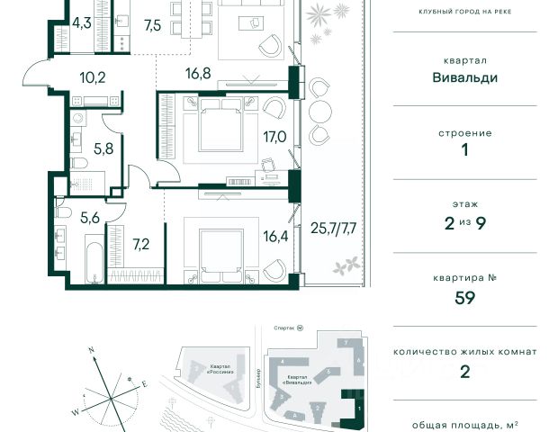Клубный город на реке Primavera — это современный жилой комплекс премиум-класса, расположенный на первой береговой линии Москвы-реки в экологически чистом районе Покровское-Стрешнево. Под панорамными окнами квартир находится собственный экопарк с продуманной сетью прогулочных дорожек и современными детскими и спортивными площадками. За парком расположена набережная с собственным пляжем и зонами для отдыха. Клубный город на реке Primavera предлагает широкий выбор планировок для различных жизненных сценариев: от просторных однокомнатных квартир до пентхаусов и жилых помещений с террасами и патио. Выберите из 120 вариантов эргономичных планировок стандартного и евроформата. Из каждой квартиры открываются красивые виды на реку с углом обзора в 270 градусов. Дизайнерские лобби предлагают панорамный обзор на благоустроенный двор. Высокие потолки в 6 метров и качественная отделка создают атмосферу, схожую с пятизвездочными отелями. В Primavera есть всё необходимое для комфортной жизни в мегаполисе: • Образование для детей в шаговой доступности: 4 школы, 8 детских садов и развивающие центры с кружками и секциями. • Удобства на расстоянии приятной прогулки: супермаркеты, кафе, рестораны с верандами, салоны красоты, аптеки и многофункциональный центр для шоппинга и развлечений. • Умный дом: автоматизированное бесконтактное управление основными системами доступа и безопасности через мобильное приложение. Клубный город на реке Primavera выгодно сочетает комфорт городской жизни с близостью к природе. Живите в месте, где все создано для вашего удобства!