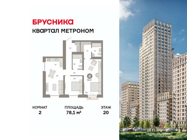 72,3 кв.м. расположена на 20 этаже, в нашем части дома 24 этажа.