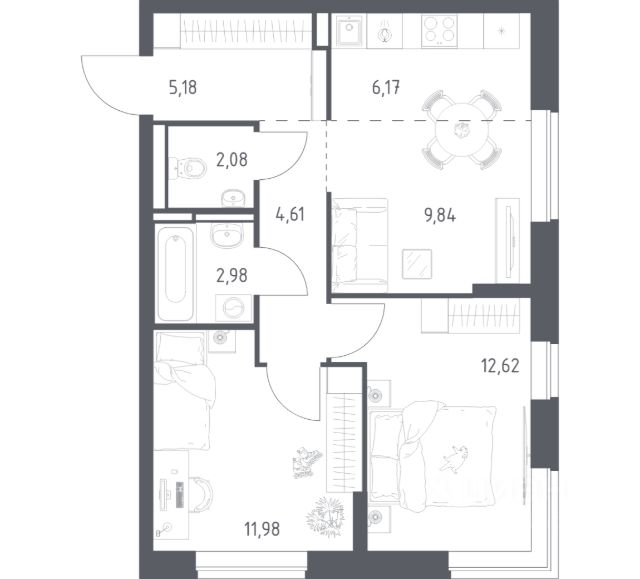 Строим кварталы для жизни с заботой о будущем. Предлагается 2-комнатная квартира комфорт-класса площадью 55,46 кв.м в корпусе 7.4 на 9-м этаже, в жилом комплексе "Богдановский Лес". Застройщик сдает квартиры с отделкой в нескольких вариантах: предчистовая, готовая, улучшенная или вариант без нее. Последний подойдет тем, кто хочет создать свой уникальный интерьер и ничем себя не ограничивать. А если не хочется тратить время на ремонт, можно выбрать опцию — с отделкой. Перед тем как отдать ключи, застройщик установит натяжные потолки, поклеит обои под покраску, положит ламинат светлых тонов, а в санузлах — керамическую плитку и керамогранит. Приобрести квартиру возможно по специальным акциям от застройщика, с текущими условиями акций можно ознакомиться в блоке "Акций". Цена динамическая и может отличаться, уточняйте актуальность у застройщика. "Богдановский Лес" находится в 17 км от МКАДа, но после открытия Южно-Лыткаринской автодороги расстояние уменьшится до 14 км. Рядом с домом — Коробовский лесопарк. Все дома в "Богдановском Лесу" не выше 12 этажей и располагаются в форме полукруга. Такое решение дарит ощущение камерности. На фасадах — кирпич природных оттенков: от белого и бордо до серого и коричневого. В квартале будет все для жизни: поликлиника и спорткомплекс с бассейном, детские сады и школы. За пределами приватных дворов появятся игровые и спортивные кластеры. "Богдановский Лес" — это: 1. До МКАДа — 20 минут на машине, а после открытия Южно-Лыткаринской автодороги — 12 минут 2. До станции метро "Котельники" — 20 минут на машине 3. До станции метро "Домодедовская" — 30 минут на машине 4. Аэропорт Домодедово — в 35 минутах на машине 5. Рядом — лес, реки Пахра и Людовна, Большой Людовинский пруд с зоной отдыха 6. Экомаршрут в Коробовском лесопарке рядом с домом, который соединит кварталы: "Пригород Лесное", "Горки Парк" и "Богдановский Лес" 7. Национальный конный парк "Русь" и парк-отель "Орловский" в 1020 минутах пешком 8. Прогулочный маршрут через лесопарк 9. Монолитные дома комфортной высоты — от 11 до 12 этажей 10. Воркаут-пространства и велопешеходный бульвар 11. Многоуровневые паркинги в пешей доступности 12. В планах открыть еще 3 школы, 4 детских сада, поликлинику, торговый центр, спорткомплекс с бассейном, аквапарк на территории парк-отеля "Орловский"