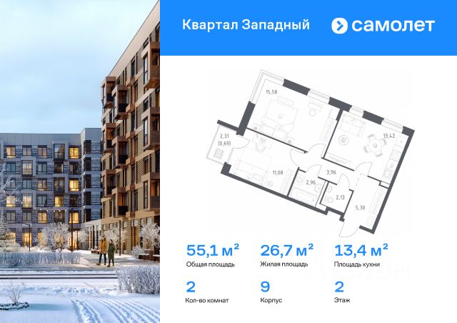Строим кварталы для жизни с заботой о будущем. Предлагается 2-комнатная квартира комфорт-класса 54,78 кв.м в корпусе 9 на 10 этаже, в ЖК "Квартал Западный" Квартира с чистовой отделкой. Доступность дополнительных опций уточняйте у застройщика. Приобрести квартиру возможно по специальным акциям от застройщика, с текущими условиями акций можно ознакомиться в блоке "Акций". Цена динамическая и может отличаться, уточняйте актуальность у застройщика. Жилой комплекс в окружении лесопарков и рядом с рекой. До станции МЦД-4 "Санино" можно дойти пешком за 7 минут, а на территории проекта появится транспортно-пересадочный узел с торговым центром. Для жителей построят школу, 2 детсада, в одном из которых будут развивающие кабинеты-трансформеры. Дворы — тихое зеленое пространство без машин. В проекте появится собственный ландшафтный парк с благоустроенной набережной и центральная площадь, на которой будут проводиться различные мероприятия. Высота домов — от 5 до 15 этажей. Фасады выполняют в естественных оттенках, в соответствии с дизайн-кодом "Полевой луг". У каждой секции — свое цветовое решение. Белый цвет верхних этажей добавляет застройке легкости. Фасады облицованы клинкерным глазурованным кирпичом, который используют в проектах бизнес-класса.