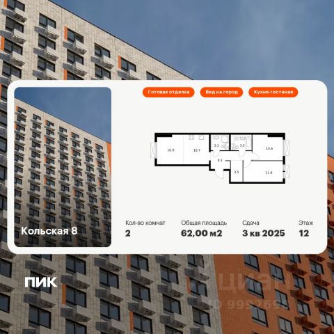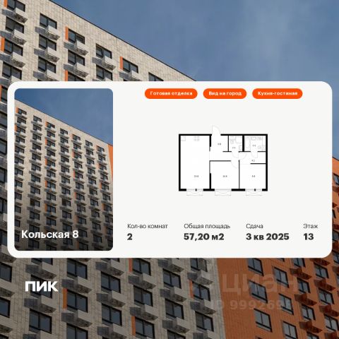 Продаётся 2-комн. квартира площадью 47 кв.м на 21 этаже 25 этажного дома (Корпус 2.1, Секция 2) проекта ПИК Кольская 8. Светлый просторный подъезд на уровне земли, функциональная планировка, большие окна, c отделкой. Жилой квартал "Кольская 8" строится в Бабушкинском районе, в 8 минутах пешком от метро "Свиблово". До Ярославского шоссе на машине — 8 минут, а до ТТК — 16. До нескольких парков и набережной реки Яузы можно дойти пешком. Проект состоит из корпусов с подземными паркингами, школа и детский сад. В зелёных дворах-парках будут места для отдыха, современные детские и спортивные площадки. На первых этажах откроются магазины, кафе и другие сервисы — за кофе и свежим хлебом к завтраку можно будет просто спуститься на лифте. Рядом с кварталом есть всё для комфортной жизни: в 8 минутах неспешным шагом — благоустроенные парки Яуза и Свиблово, а до Ботанического сада можно доехать за 7 минут на машине. Недалеко от проекта находятся детские сады, школы, поликлиники, магазины и торговые центры. Артикул 834663 (Застройщик АО "СПЕЦИАЛИЗИРОВАННЫЙ ЗАСТРОЙЩИК СТРОЙДЕТАЛЬ")