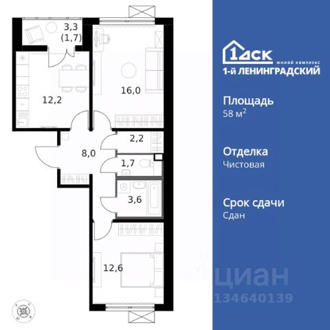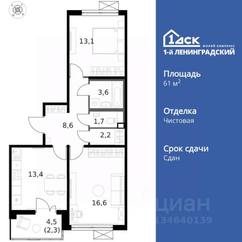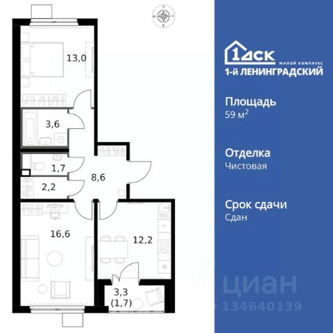 Продается уютная двухкомнатная квартира в новостройке САО Москвы ЖК 1-й Ленинградский класса Комфорт плюс, на Ленинградском шоссе, дом 228к3. Общая площадь квартиры составляет 59.7 кв.м, из них жилая площадь — 29.7 кв.м, а кухня — просторные 12.2 кв.м. Квартира располагается на 8 этаже 15-этажного панельного дома, построенного в 2023 году. Высота потолков — 2.74 метра, что добавляет простора вашему будущему жилью.