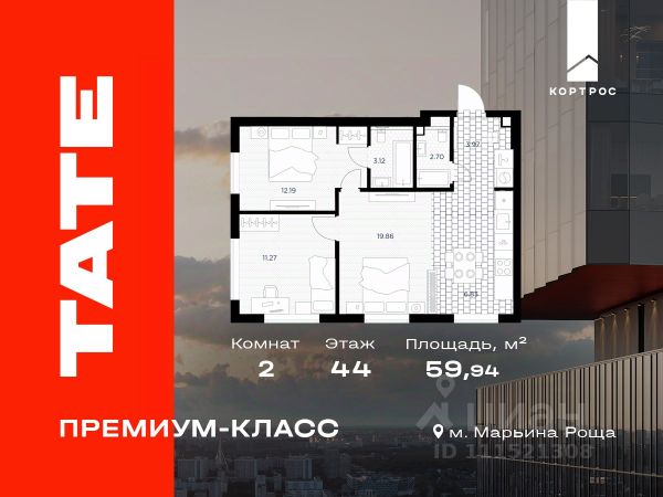 Представляем вашему вниманию прекрасную возможность стать обладателем 2-комнатной уютной и светлой квартиры 202, площадью 65.85 м², расположенной на 16 этаже в историческом районе Москвы. Квартира продаётся от застройщика ГК "КОРТРОС" одного из крупнейших девелоперов России. Основные преимущества, важные для вашего комфортного проживания: • Квартира с предчистовой отделкой (white box) - идеальное решение, чтобы воплотить собственное видение дизайна; • По желанию можно приобрести кладовую на этаже и парковочное машиноместо. TATE - премиальный жилой комплекс, вдохновленный эстетикой современного искусства. Две башни TATE - образцы архитектурного минимализма, триумф функциональной простоты и отсутствия вычурности. Трехуровневое благоустройство от авторов столичного "Музеона", SPA и фитнес только для резидентов, а также панорамный лаунж на высоте 140 метров, откуда открывается впечатляющий вид на вечернюю Москву. Важной особенностью проекта является продуманная инфраструктура. На территории TATE будут расположены кафе и рестораны, где ранним утром можно насладиться горячей чашечкой кофе, а вечер провести за ужином в тихой расслабляющей атмосфере на открытой веранде. После рабочего дня непременно стоит расслабиться в SPA, расположенном на территории ЖК. Для любителей спорта предусмотрен фитнес-центр с бассейном. Для тех, кто ценит искусство на территории ЖК будет действовать арт пространство со сменной экспозицией и лаунж с панорамным видом на 39 этаже. Внутренний двор превращен в тихое зеленое пространство с арт-объектами, прогулочными аллеями и уютными зонами отдыха. Здесь приятно проводить время с семьей, встречать друзей и просто наслаждаться состоянием покоя. TATE - это новый уровень жизни рядом с ЦАО: • 5 минут пешком до метро Марьина роща; • 15 минут пешком до парков "Сокольники"и "Останкино"; • Сады и школы в шаговой доступности; • 10-15 минут на автомобиле до центра Москвы и Цветного бульвара, 20 минут до Москва-Сити. Архитектура, комфорт и вдохновение - все, чтобы каждый Ваш день начинался красиво.