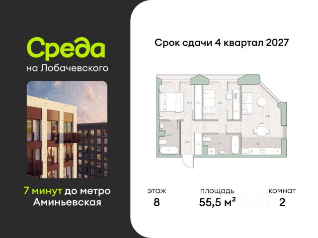 Прямая продажа от застройщика. Продаётся 2-комнатная квартира общей площадью 56.30 м² с предчистовой отделкой в ЖК Веер на 19-м этаже 22 этажного дома. Жилой комплекс бизнес-класса Веер от компании MR — это футуристичный мультиквартал, расположенный в престижной локации на западе Москвы. Благодаря переменной высоте башен — двух 22-этажных, 46-этажной и двух 59-этажных — возникает динамичность в силуэте комплекса, а его яркий образ вносит разноплановость в архитектурный пейзаж района. Расположение и транспортная доступность: • Веер удобно расположен в непосредственной близости от Кутузовского проспекта, обеспечивая быстрый доступ к центральным районам Москвы • Комплекс находится непосредственно напротив самого большого природного заказника в Москве - парка "Долина реки Сетунь", а за семь минут можно доехать до памятника садово-паркового искусства, Троекуровского леса. • Всего в 15 минутах - центр города, самая престижная бизнес-школа управления России "Сколково", дом творчества "Переделкино". Инфраструктура: Разнообразить свой день резиденты Веер смогут также проводя больше времени на свежем воздухе. Двор разделен на 4 зоны разных эмоций и действий, которые пересечены и соединены веерными прогулочными маршрутами: • Спортивная площадка устроена в глубине "Кленовой рощи" • В "Чайном домике" будет создан навес с утеплением для отдыха в любую погоду • Площадки для детей воплотятся в "Волшебный лес" с цветами, зеркалами и световым дизайном • "Центральная площадь" устроена у водного оазиса живописного пруда. Компания MR предлагает своим клиентам специальные условия приобретения квартир в рамках программ ипотечного кредитования от банков-партнеров.