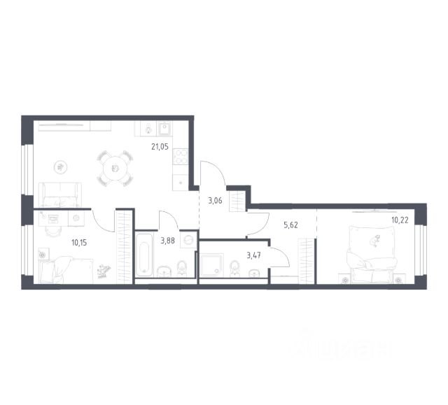 Продаётся 2-комнатная квартира 288, площадью 47,40 м², на 21 этаже в ЖК "Бригантина" корпус 1. Стоимость — от 13349096 руб. Квартира white box, планировка односторонняя, окна во двор.