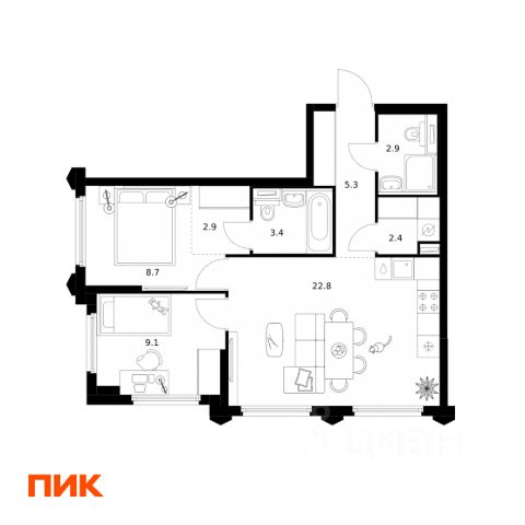 Продаётся 2-комн. квартира площадью 50,3 кв.м на 31 этаже 32 этажного дома (Корпус 22.3, Секция 3) проекта ПИК Бусиновский парк. Светлый просторный подъезд на уровне земли, функциональная планировка, большие окна, c отделкой. "Бусиновский парк" расположен на севере Москвы — в районе Западное Дегунино, в 20 минутах пешком от метро "Ховрино". Яркий и современный образ жилого квартала создают башни-доминанты — у каждой из них свой уникальный фасад, разработанный российскими архитектурными бюро. Проектом предусмотрены входы на уровне земли, без ступеней, порогов и пандусов — так удобнее и безопаснее. У подъездов будет два выхода: на улицу и во двор-парк. В наших дворах мы установим столы и лавочки со встроенными зарядными устройствами. Не нужно будет возвращаться домой, чтобы зарядить смартфон или ноутбук: можно весь день работать на свежем воздухе В проекте появится масштабное пространство площадью 4Га - MultiHub "Атлас". Для юных жителей появится большая игровая площадка с горными хребтами для лазания, ручьём золотоискателей, лесным фортом и песочной зоной для малышей. Дети смогут придумывать здесь бесчисленное количество игр независимо от своего возраста. Взрослые смогут отдохнуть в дождевом саду — это удивительное место, где после дождя появляются маленькие живописные озерца. Для спорта — уличные тренажёры, площадки для командных игр, столы для пинг-понга и шахмат. Владельцы собак оценят место для прогулок с питомцем. А специально для подростков мы спроектировали уникальное пространство для отдыха — памп-трек для катания, большой навес, амфитеатр и сетки для отдыха, где они смогут собираться вместе в любую погоду. В лобби "Бусиновского парка" будет удобная зона ожидания, где можно встретить друзей, курьера или дождаться такси, а также гостевая туалетная комната со столиком для пеленания. На территории проекта предусмотрены двухуровневый подземный и наземный паркинги. В паркингах установлены надёжные системы вентиляции, пожаротушения и круглосуточного видеонаблюдения. А ещё для наших паркингов мы разработали систему навигации, которая помогает быстро найти автомобиль. На подземных этажах "Бусиновского парка" предусмотрены вместительные кладовые. В них жители проекта смогут хранить сезонные и габаритные вещи, которые занимают много места в квартире. В корпусе 1.4 появится общественная терраса на 30-м этаже. Доступ сюда есть только у жителей, поэтому вы не встретите в этом пространстве посторонних людей. Здесь можно заниматься спортом, отдохнуть за чтением книги или создать собственный сад. А ещё отсюда открываются красивые виды на город. В "Бусиновском парке" предусмотрены квартиры с панорамным остеклением, различными балконами, эркерами, угловыми окнами и большим количеством окон — до пяти в одной комнате. В таких квартирах широкий угол обзора: можно пить кофе, наблюдая за жизнью на улице и наслаждаясь ощущением простора. Ещё больше комфорта придаст мягкий солнечный свет, который равномерно осветит всю квартиру. Артикул 954445 (Зас