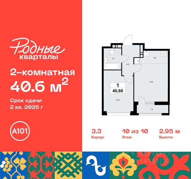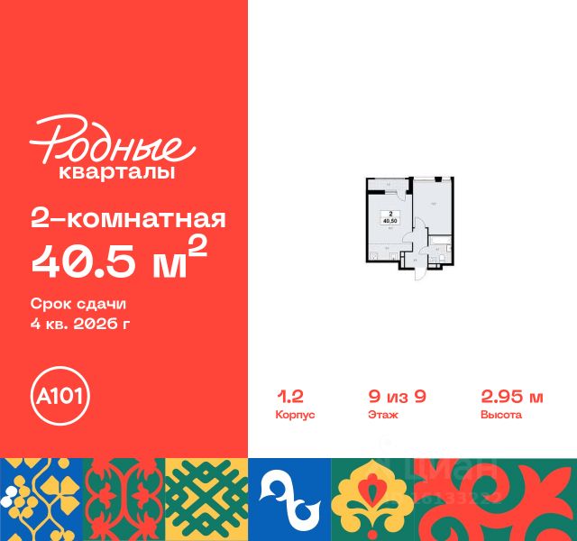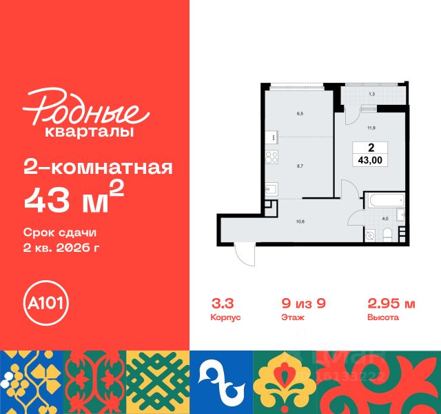 Продается двухкомнатная квартира 249 в новостройке Жилой район "Родные кварталы" по адресу Москва, ТиНАО, Новомосковский АО, Марушкинское С/П, жилой комплекс Родные Кварталы, 1.2, район Внуково, Новомосковский административный округ, Москва. Общая площадь квартиры - 42.70 кв. м., этаж 9 из 9, секция 4. Тип проекта, по которому построен дом - монолит, компания-застройщик - ООО "А101". Стоимость квартиры - 14386911 Р. Срок сдачи - 4 квартал 2026. ПРЕДЛОЖЕНИЯ ОТ ЗАСТРОЙЩИКА В ФЕВРАЛЕ 2026: Скидки до 10% на все квартиры. Только в офисах продаж до 28 февраля. Ипотека от 13,9 % для всех! На весь срок. "Семейная ипотека" вернулась. Ставка от 3,5 % на весь срок! Без удорожания! Выгодное ипотечное комбо: Ипотека от 2200 р./мес. и от 6 % после рождения ребёнка! Ипотека для всех "Держи пять!" - ставка 5 % на 2 года! *более подробную информацию по скидкам и акциям уточняйте в отделе продаж ЖК "Родные кварталы" строится в экологически благоприятной локации, рядом с парком Изварино и Ульяновским лесопарком. До станции метро "Аэропорт Внуково" и МЦД "Толстопальцево" - 15 мин. на транспорте. До Боровского, Киевского, Минского шоссе - 3, 6 и 20 минут соответственно Основная концепция благоустройства - воссоздание колорита разных регионов России. Этот же принцип использован в благоустройстве и озеленении района от бюро GAFA. Лесопарк, зоны отдыха, пешеходный бульвар со спуском в виде амфитеатра к набережной и центральной торговой площади, спортивные площадки. В шаговой доступности откроются детские сады и школа, поликлиника. На первых этажах домов - спортклубы, клиники, аптеки, супермаркеты, кафе и многое другое. Цветовые решения лобби также созвучны климатическим зонам России. Здесь появятся зоны ожидания с гостевыми санузлами и колясочными. Предусмотрены подземные паркинги и кладовые. Преимущества "Родных кварталов" - уютная атмосфера "малой родины" - полноценная инфраструктура внутри района - выезд на ключевые шоссе - от 3 минут на автомобиле - малоэтажная застройка